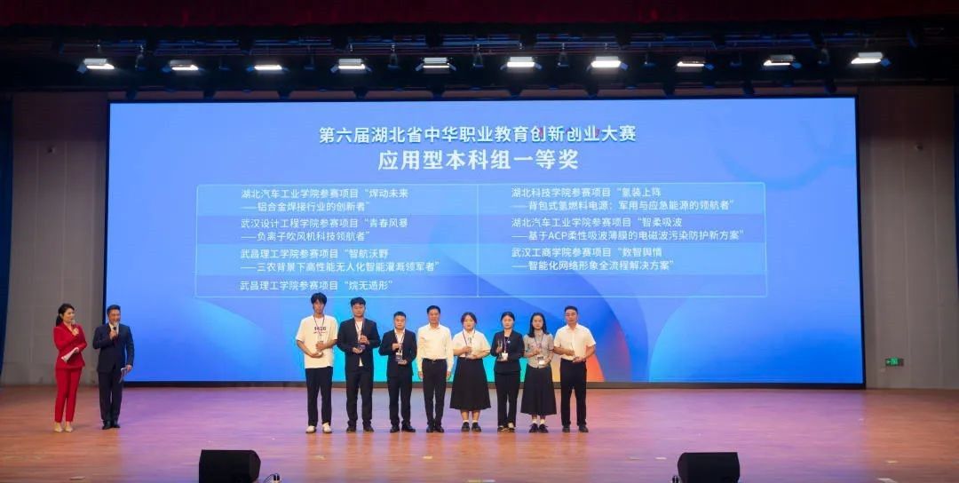 本网讯(文/图程俊)9月28日,第六届湖北省中华职业教育创新创业大赛在襄阳科技职业学院落下帷幕。全省本科高校共30个项目入围决赛,产生一等奖8名。经过激烈的角逐,我校参赛项目《“焊”动未来——铝合金焊接行业的创新者》《智柔吸波——基于ACP柔性吸波薄膜的电磁波污染防护新方案》以总成绩排名第二和第五荣获应用型本科组一等奖。其中,《“焊”动未来——铝合金焊接行业的创新者》成功获得参加国赛资格,获奖成绩在本科组参赛高校中名列第一,周博芳、兰笛荣获“最佳指导教师”,学校荣获“竞赛组织奖”。