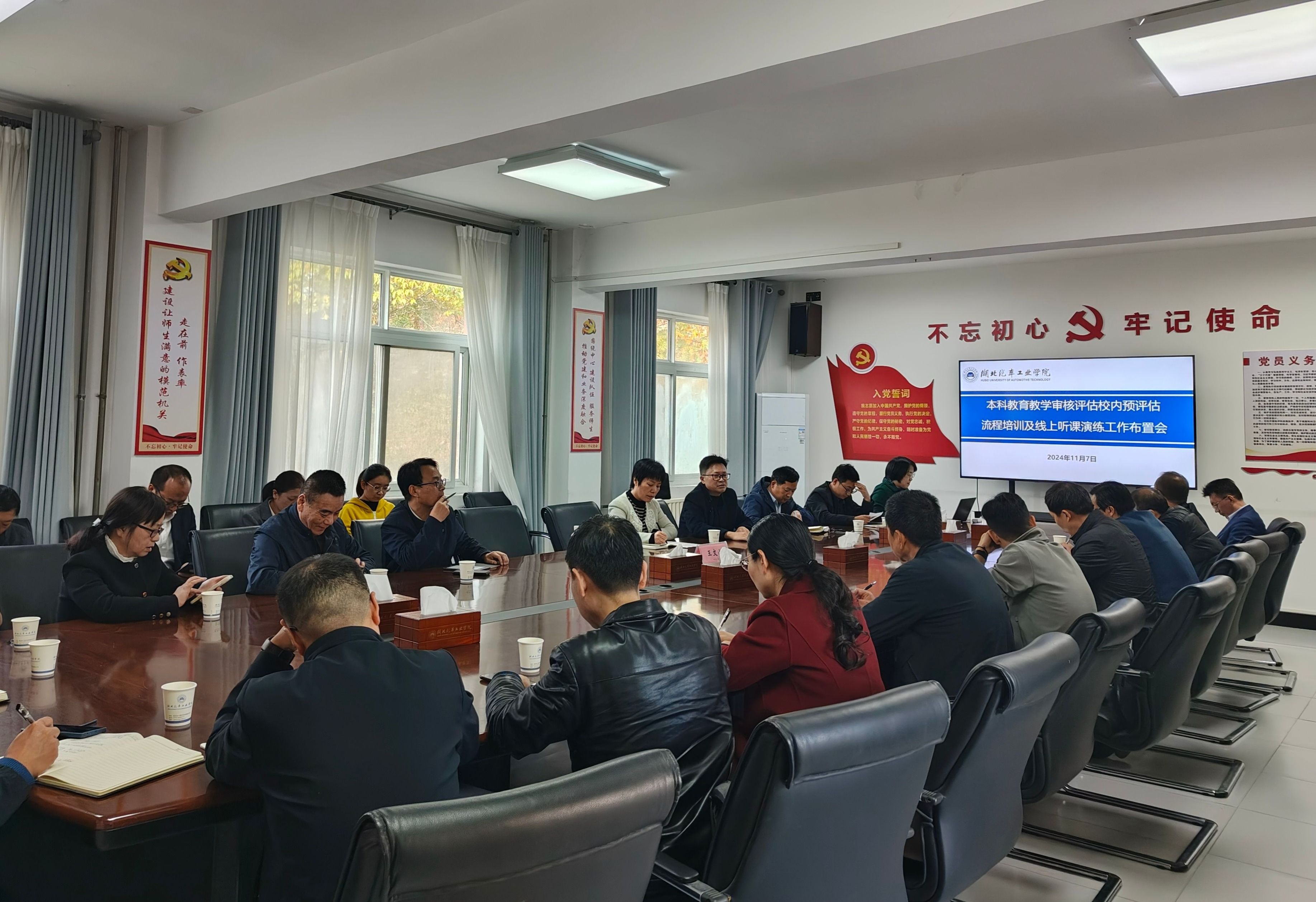 本网讯(文/图 黄翌)11月7日下午,学校在行政楼六楼会议室召开审核评估校内预评估培训及线上听课演练工作布置会。党委常委、副校长张红霞出席会议,会议由教学质量监控与评估中心主任钱洁主持。
