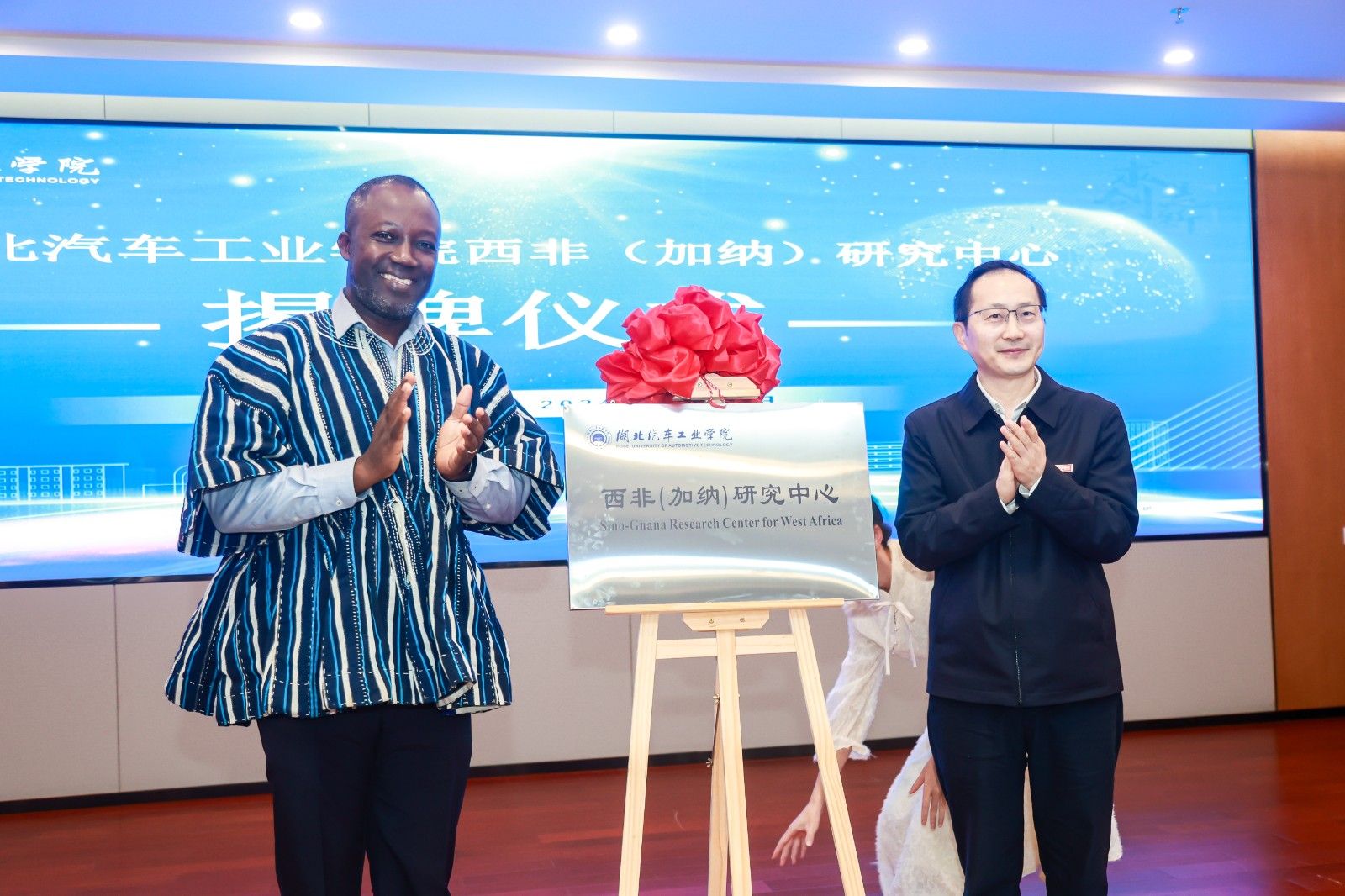 李涛、Daniel Duah共同为“湖北汽车工业学院西非(加纳)研究中心”揭牌。