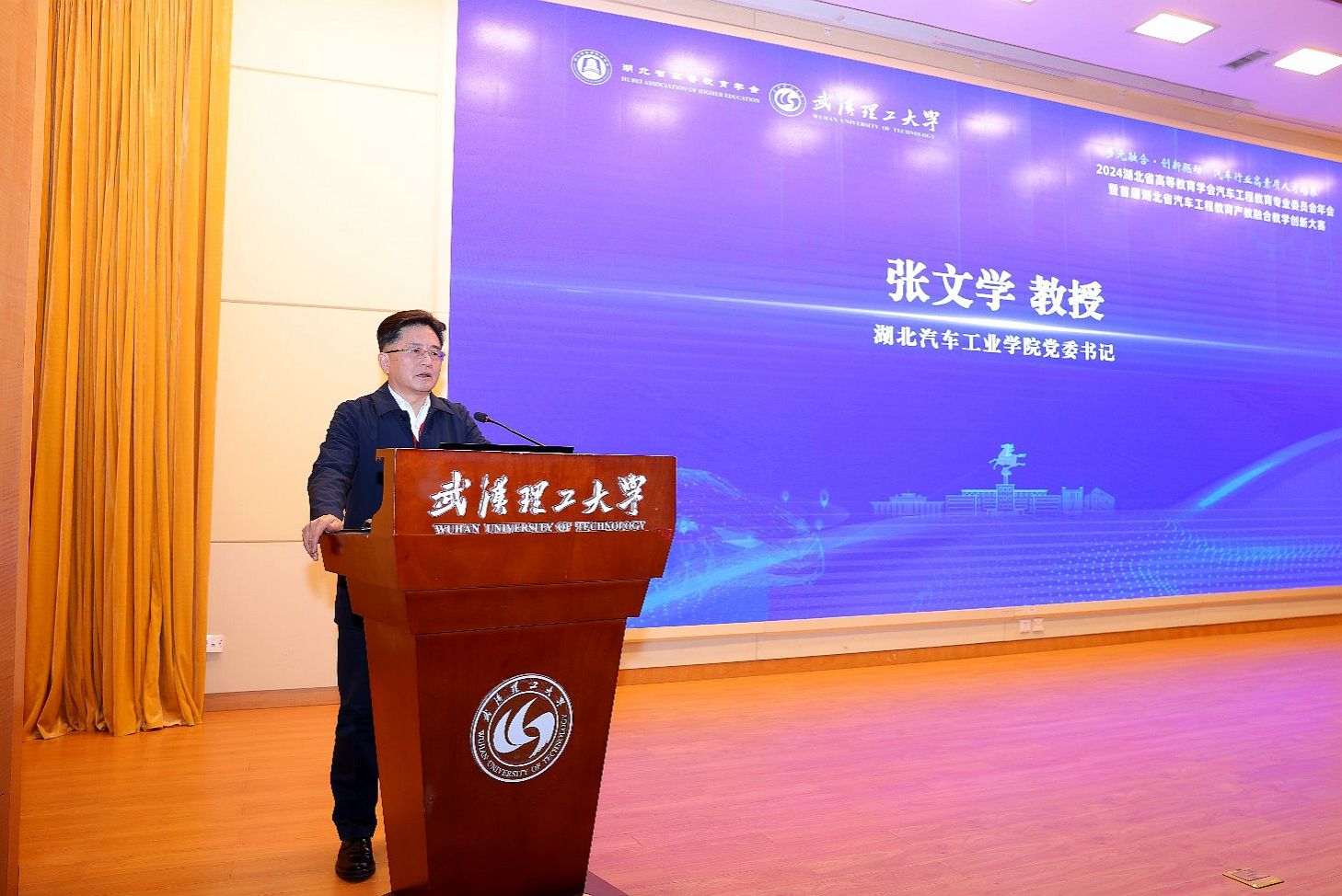 本网讯(文 李函/图 董焱章)12月1日上午,湖北省高等教育学会汽车工程教育专业委员会2024年会暨湖北省汽车工程教育产教融合教学创新大赛在武汉理工大学会议中心报告厅举行。湖北省高等教育学会副会长、武汉轻工大学校长董仕节,以及来自省内外40多家高等教育研究领域的专家学者、湖北省高等教育学会汽车工程教育专业委员会成员和车企代表出席会议。校党委书记张文学,党委常委、副校长张红霞参加会议。