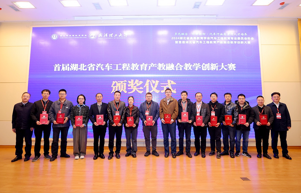 会上,张文学与武汉理工大学党委副书记夏江敬共同为首届湖北省汽车工程教育产教融合教学创新大赛获奖成果和案例颁发证书。我校覃群教授、周红妮副教授分别获得创新成果报告分组特等奖和案例分组特等奖,学校获一等奖2项、二等奖8项。