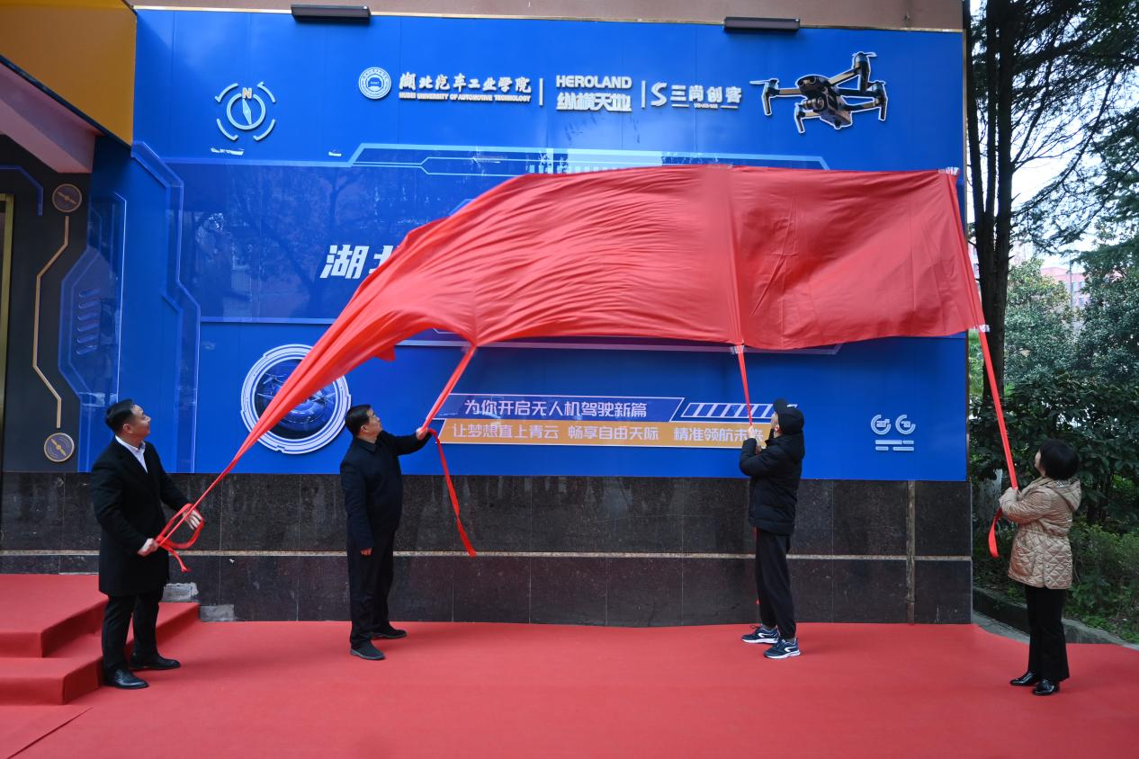 仪式上,陈海峰、贾忠东、廖水华、尚先利携手为湖北汽车工业学院无人机培训中心揭牌。陈海峰向拨冗出席的各位领导、嘉宾表示了热烈欢迎,并对长期关心支持学校发展的十堰市交通局、十堰市邮政管理局、武当山机场低空运营公司、纵横天地无人机飞行学院、三尚创客信息技术有限公司表示衷心感谢。他指出,无人机培训中心的成立,不仅增强了学校在无人机技术领域的学科优势,还通过校企共建和资源共享,为培养符合市场需求的高素质无人机技术人才提供了有力保障。