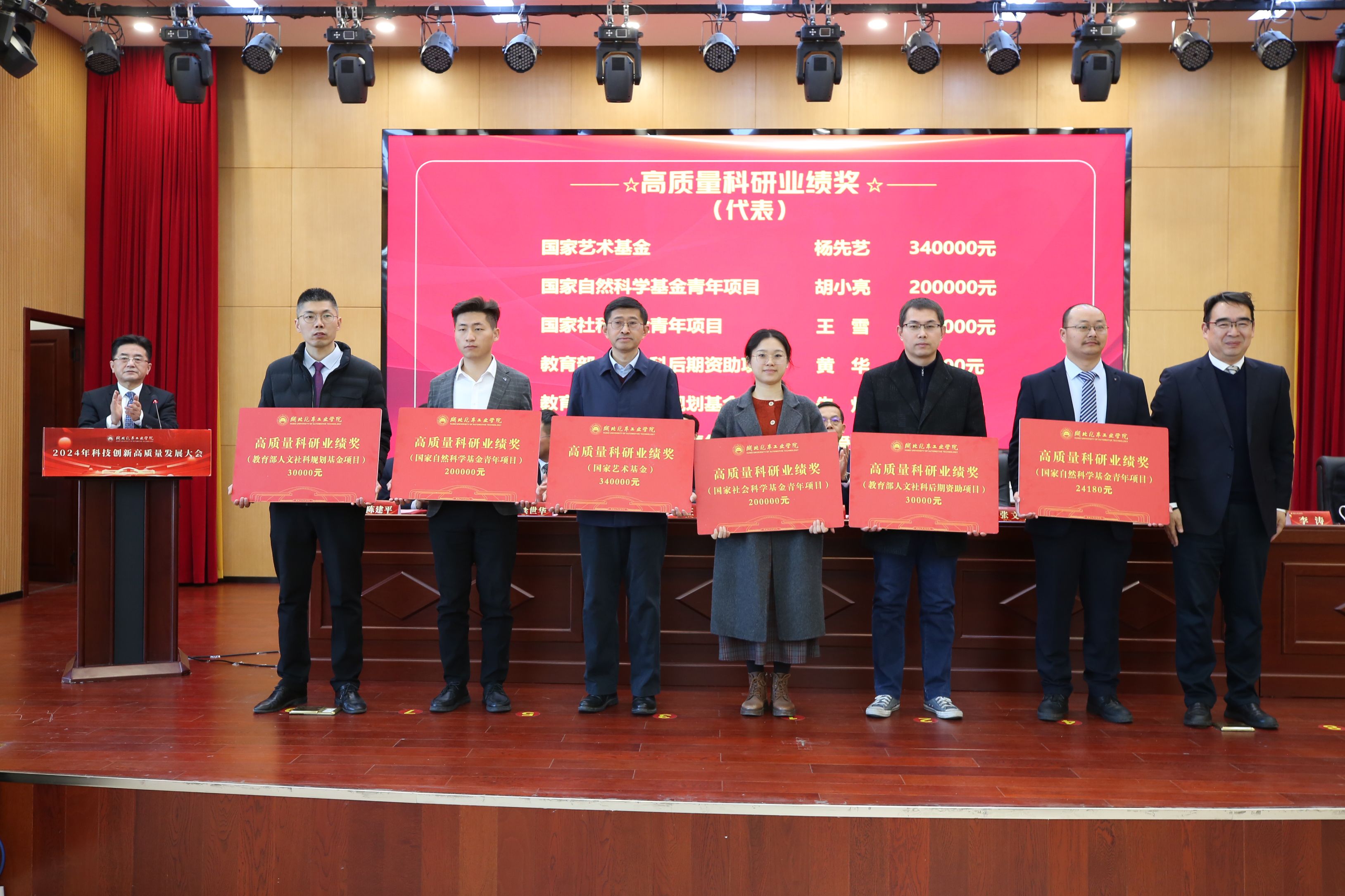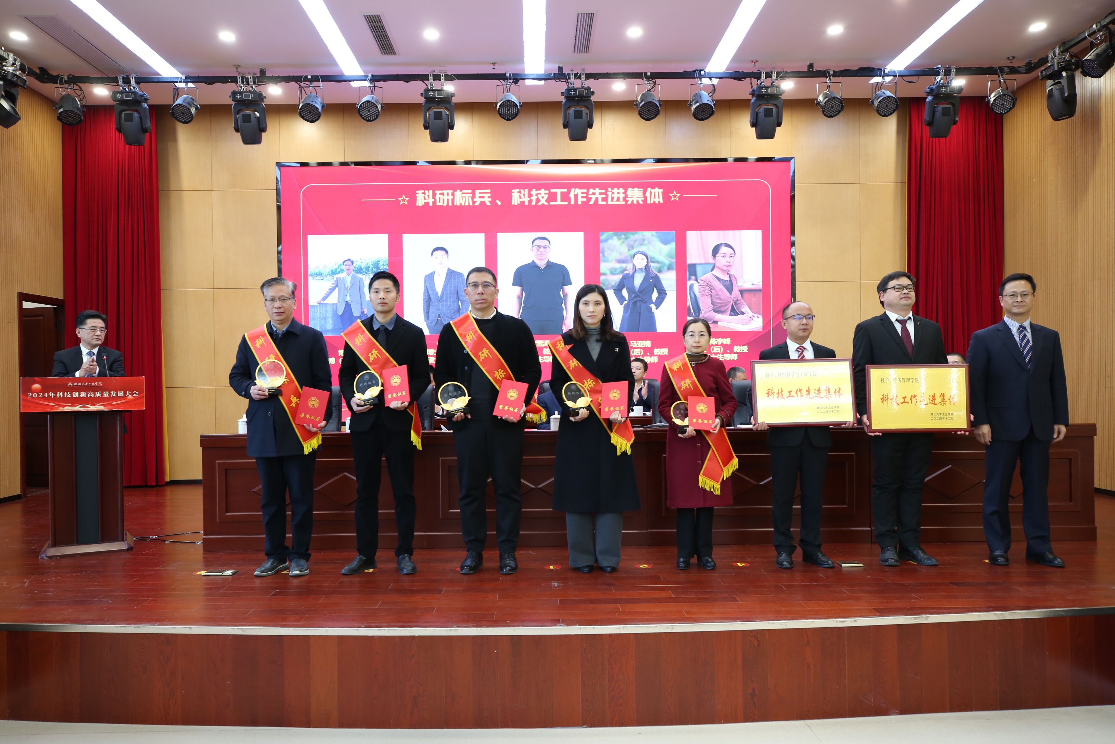 会上举行了聘任、表彰暨签约仪式。党委副书记陈建平宣读了《学校关于对重点科研科普平台负责人的聘任决定》《关于表彰2024年度科技工作先进集体、科研标兵、优秀科技工作者的决定》《关于2024年度“揭榜挂帅”项目立项的通知》。