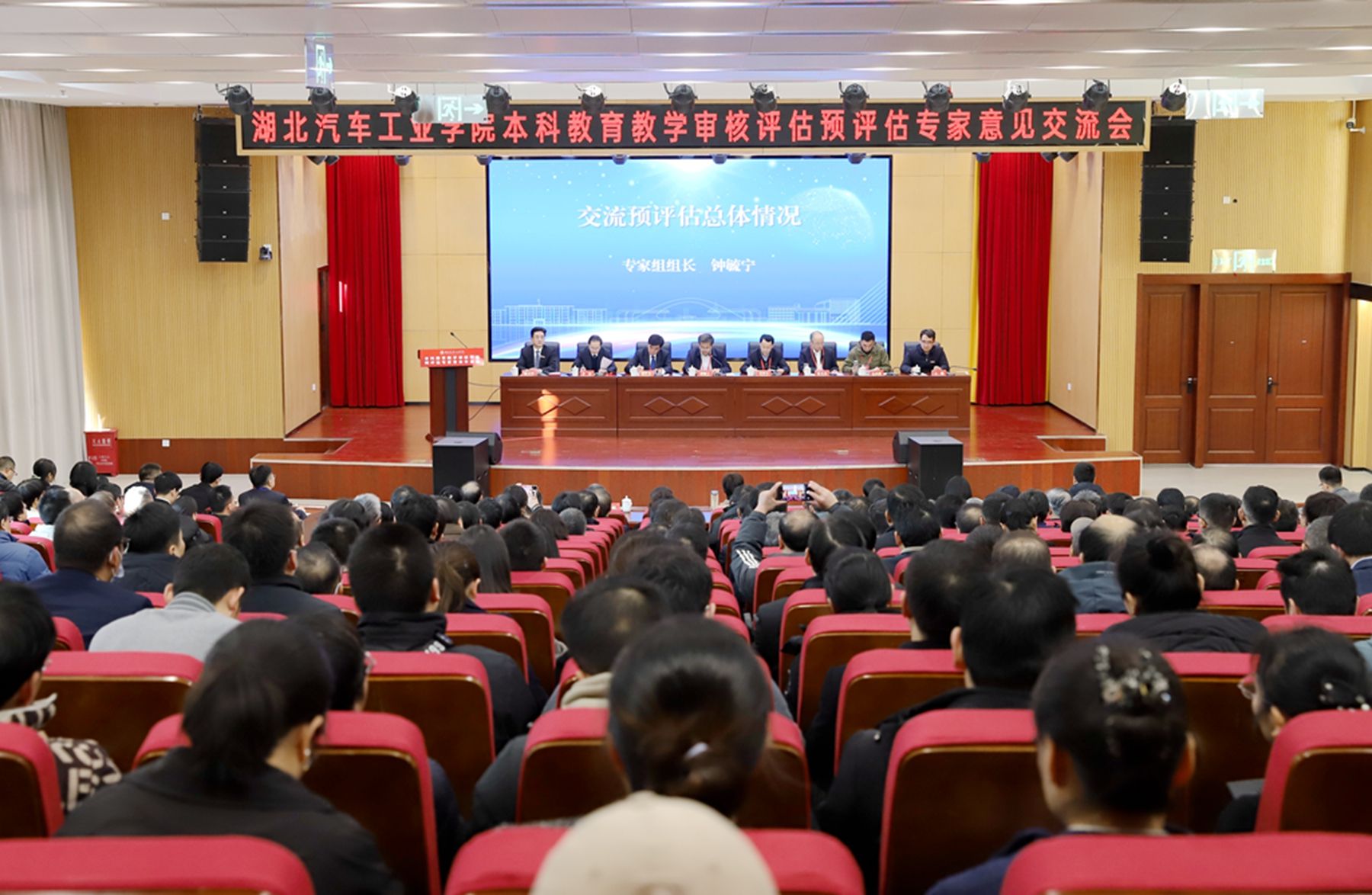 本网讯(文 陈安/图 邓玉洁)12月29日下午,湖北汽车工业学院本科教育教学审核评估预评估专家意见交流会在产教大楼四楼报告厅举行。全体校领导、中层干部、二级教授、三级教授、系主任、专业负责人、骨干教师,本科教育教学督导、项目管理员、全体专家联络员、评建办全体工作人员参加会议。预评估专家组组长、湖北开放大学党委书记钟毓宁主持会议。