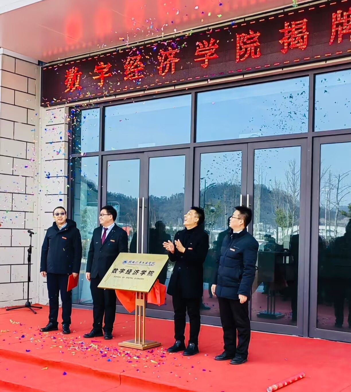 本网讯(文/图 陈安)1月15日上午,数字经济学院在北校区综合教学楼前隆重举行揭牌仪式。此次仪式标志着数字经济学院在学科建设与人才培养方面迈出了重要一步,为推动数字经济领域的教育与研究注入了新的活力。学校党委常委王文山出席揭牌仪式,全院教职工及学生代表参加仪式。揭牌仪式由学院副院长胡政发主持。
