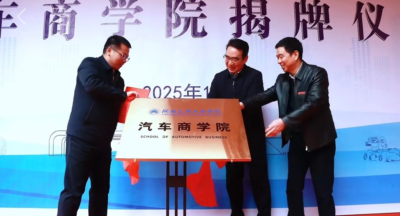 王晓、殷旅江、杨立君共同为汽车商学院揭牌。
