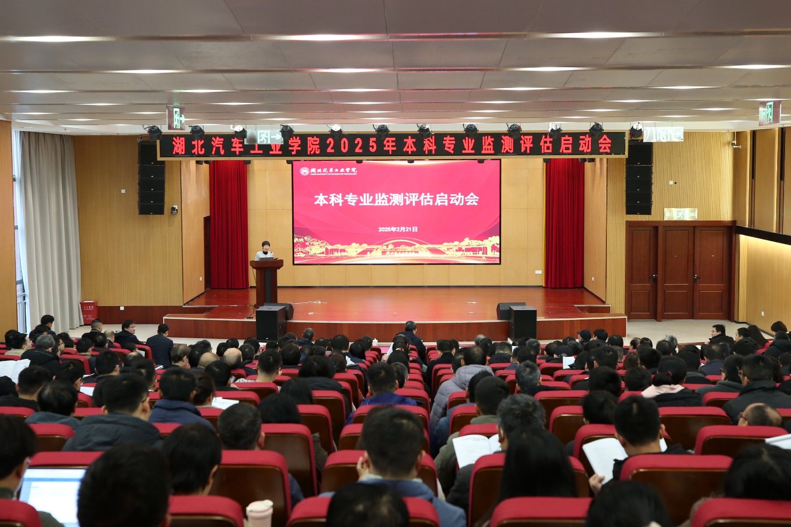 本网讯(文 徐正凯/图 李一凡)2月21日上午,新学期第一天,学校在产教大楼四楼报告厅隆重召开了2025年本科专业监测评估启动会。全体在家校领导、校督导组全体成员出席会议,副校长张红霞主持会议。