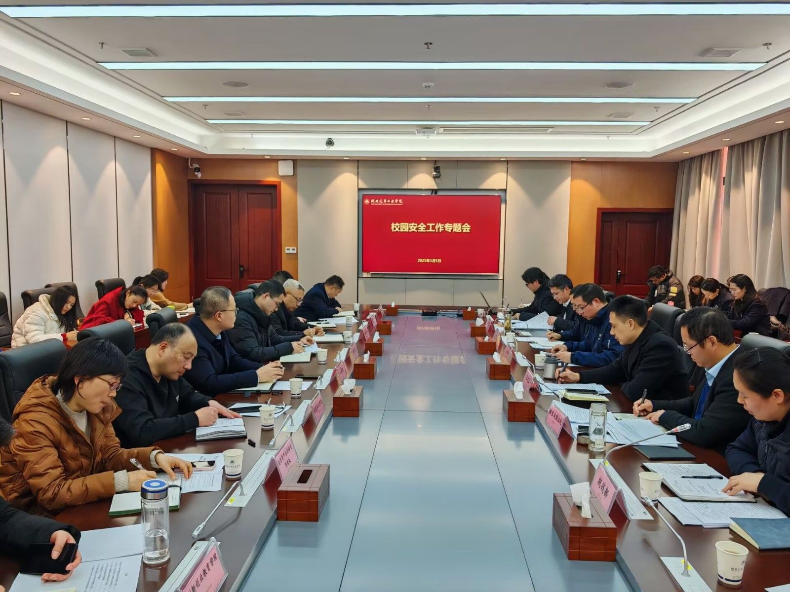 本网讯(文/图 张华、张峻萍)为深入落实省教育厅高校安全稳定工作视频会议精神,全面筑牢校园安全防线,确保新学期各项工作平稳有序开展。3月5日上午,学校校园安全工作专题会在产教大楼三楼多功能会议室召开。党委常委、党政办主任王文山出席会议并讲话。