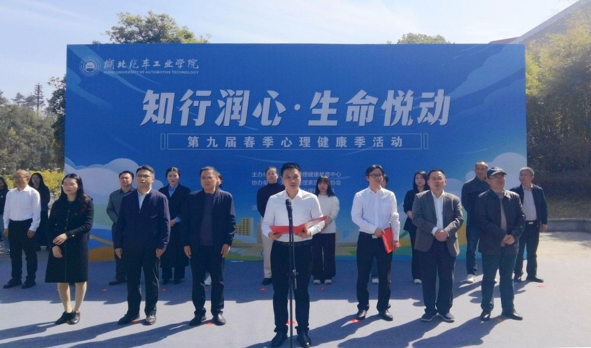本网讯(文 王嘉丽/图 邓玉洁、刘婷)阳春三月,万物生辉。3月24日下午,我校第九届春季心理健康季活动开幕式在汽车文化广场顺利举行。校党委常委、党政办主任王文山,校团委书记杜祥军、保卫处处长杨长春,校医院院长邹胜明,各二级学院副书记和心理辅导员出席开幕式,活动由学工部部长王关锋主持。