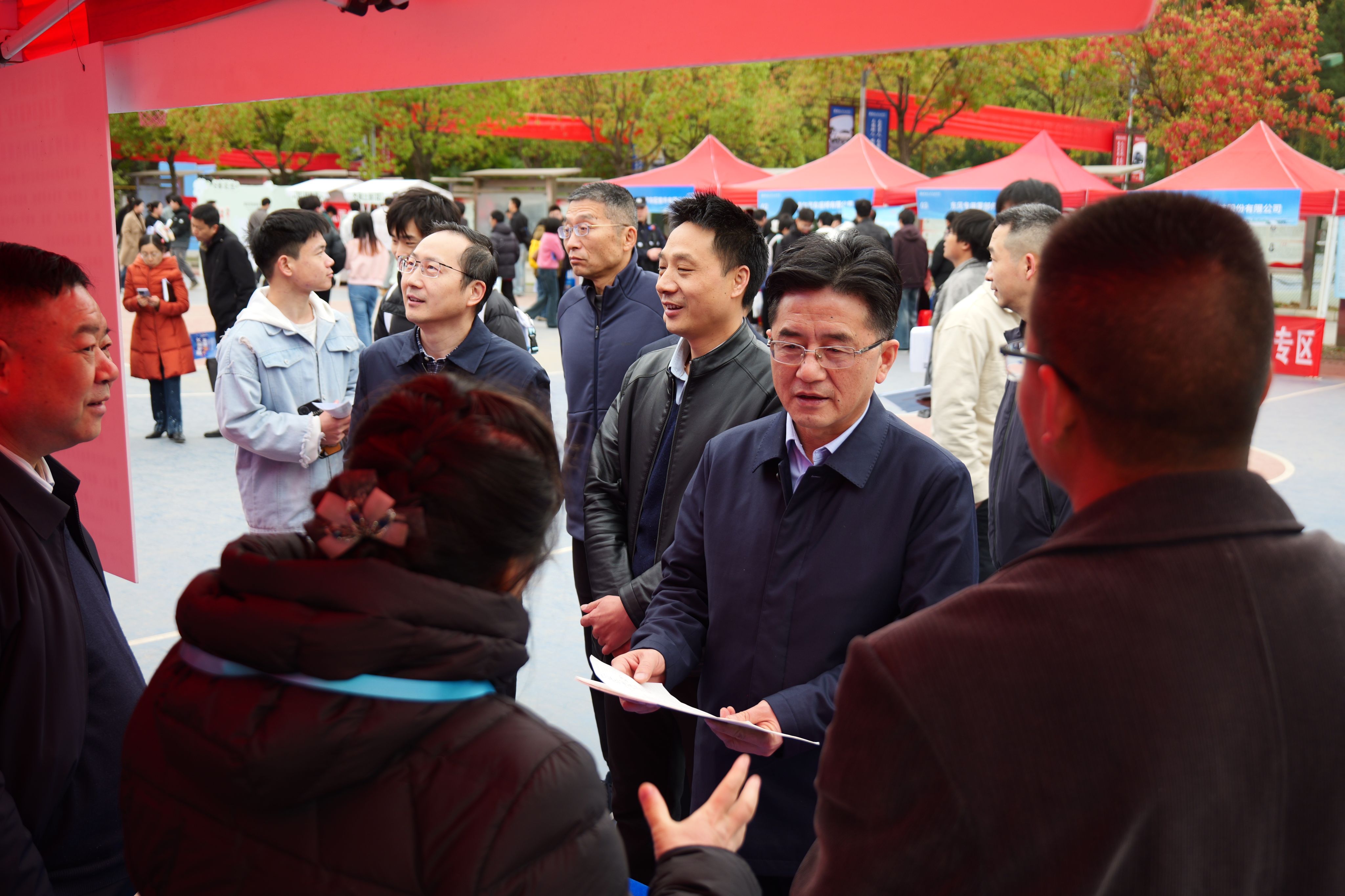 张文学一行深入招聘会现场,与毕业生们亲切交流,详细了解毕业生求职过程与进展。张文学表示,学校高度重视就业工作,将一如既往为同学们就业保驾护航,希望同学们提早明确求职目标,珍视与企业双向选择的机会,坚定信心、持续努力,力争早日找到心仪工作。