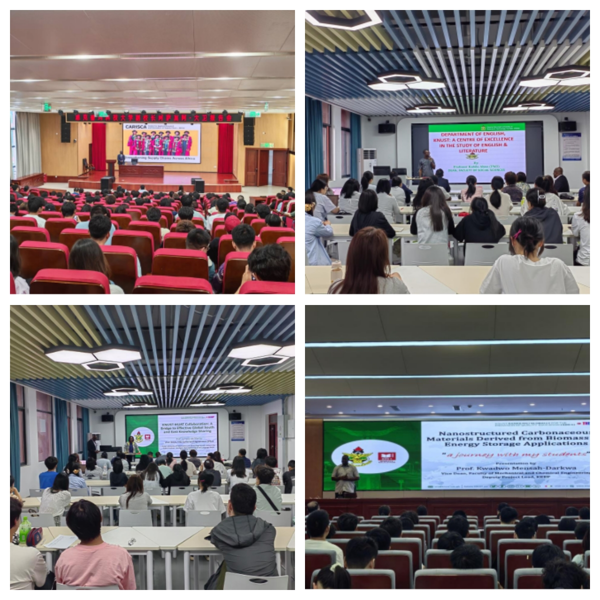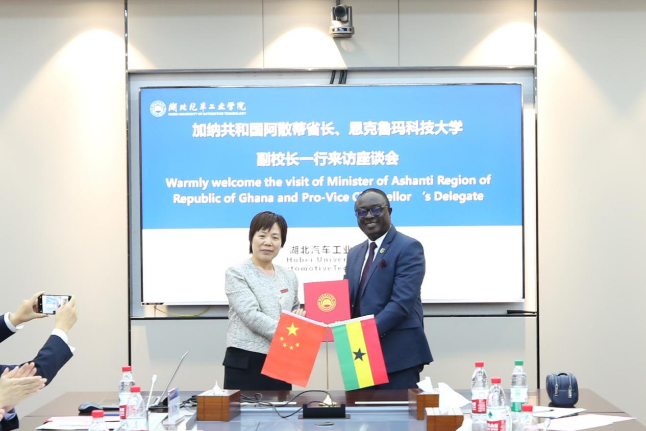 本网讯(文 罗诗棋/图 李一凡)近日,“汉语桥”恩克鲁玛科技大学教育工作者访华团莅临我校。期间,该校副校长David Asamoah、工程学院材料工程系主任Kwadwo Mensah-Darkwa、人文学院系主任Kabila Abass以及国际处副处长Manful Esmeranda受聘成为我校荣誉教授,并与我校汽车商学院、汽车材料学院、外语外贸学院(中非研究中心)的师生们展开了深入且富有成效的学术交流与互动。