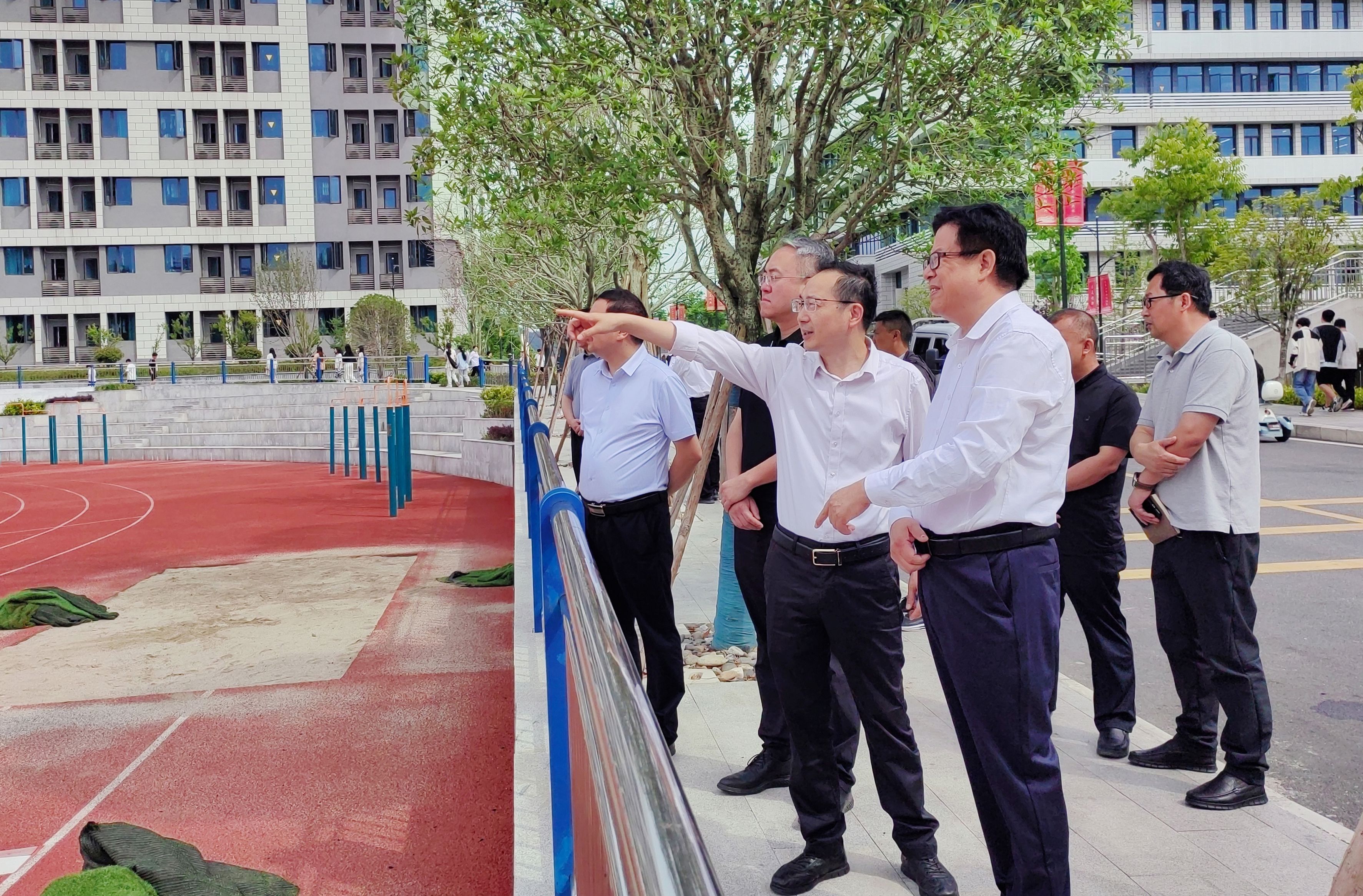 本网讯(文 吕鑫彬/图 广娟)5月14日上午,十堰市政协副主席潘世东一行莅临我校,实地调研督导学校改扩建项目。校党委副书记李涛、张湾区委常委、副区长李森全程陪同调研。