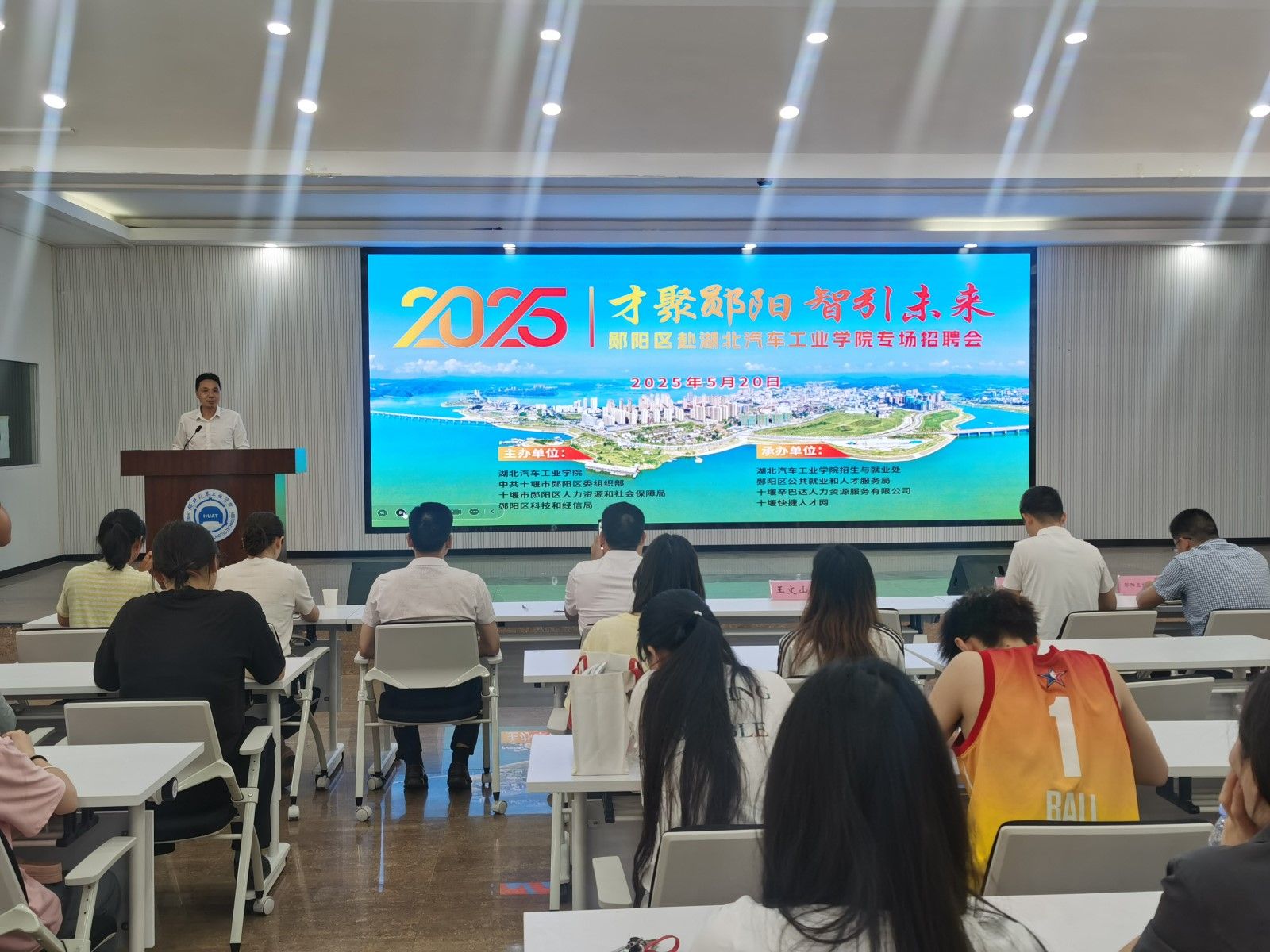 本网讯(文/图 叶珍)5月20日,由我校联合郧阳区举办的“才聚郧阳•智引未来”——湖北汽车工业学院专场招聘活动在学校5101报告厅成功举行,区人社局党组书记、局长岳伟,区科技经信局党组书记、局长龚健,区公共就业和人才服务局局长李香云,区委人才办主任吴波,我校党委常委、党政办主任王文山,以及招生与就业处负责人、相关二级学院党委书记、副书记和就业辅导员参加活动。