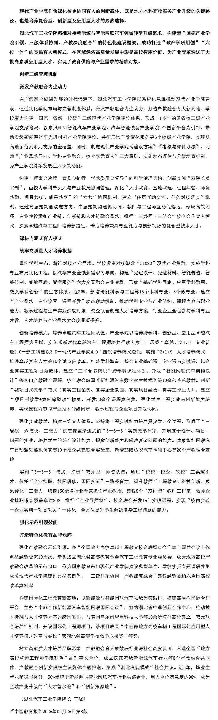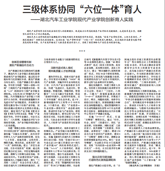 【中国教育报】王晓:三级体系协同 “六位一体”育人——湖北汽车工业学院现代产业学院创新育人实践