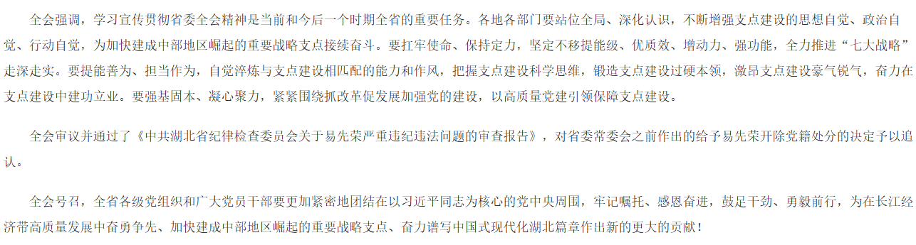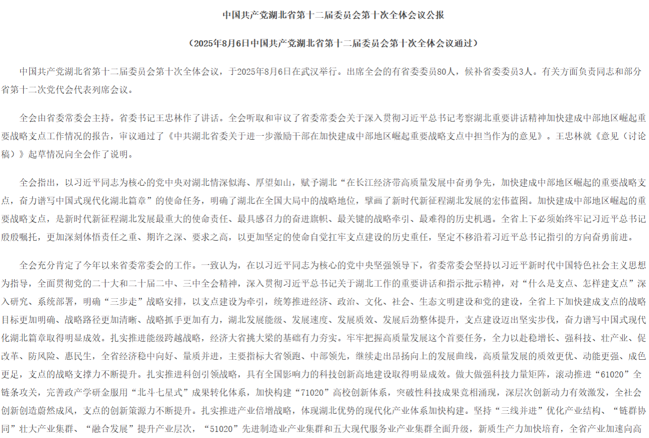 【学习进行时】中国共产党湖北省第十二届委员会第十次全体会议公报