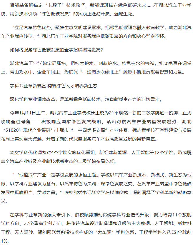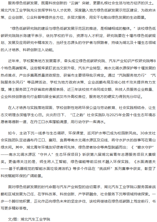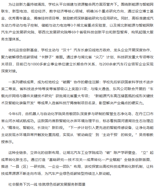 【湖北日报】湖北汽车工业学院:守好“生态井” 培育“新动能”