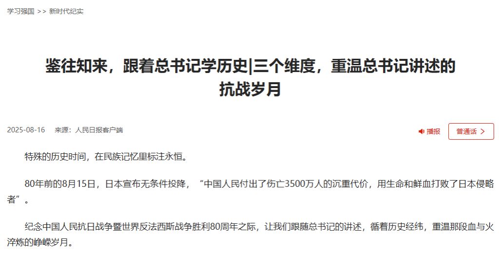 【学习进行时】三个维度,重温总书记讲述的抗战岁月