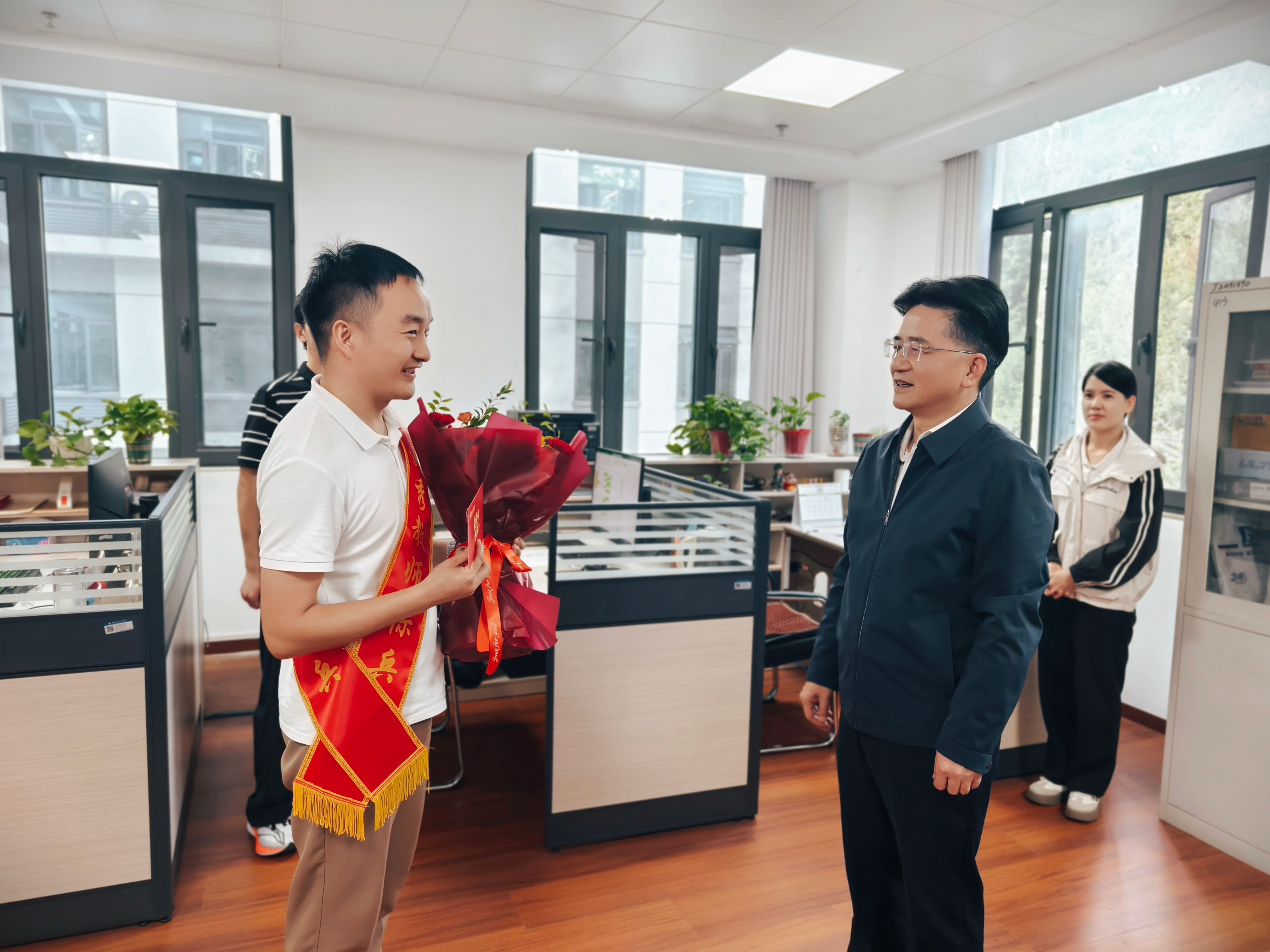 本网讯(文/董圣滨)教师是立教之本、兴教之源,是教育发展的第一资源。9月9日,在第41个教师节即将来临之际,学校领导先后走访慰问辛勤耕耘在育人一线的教师代表,并向他们送上鲜花与节日祝福。