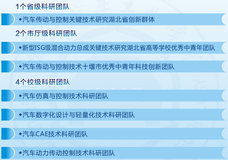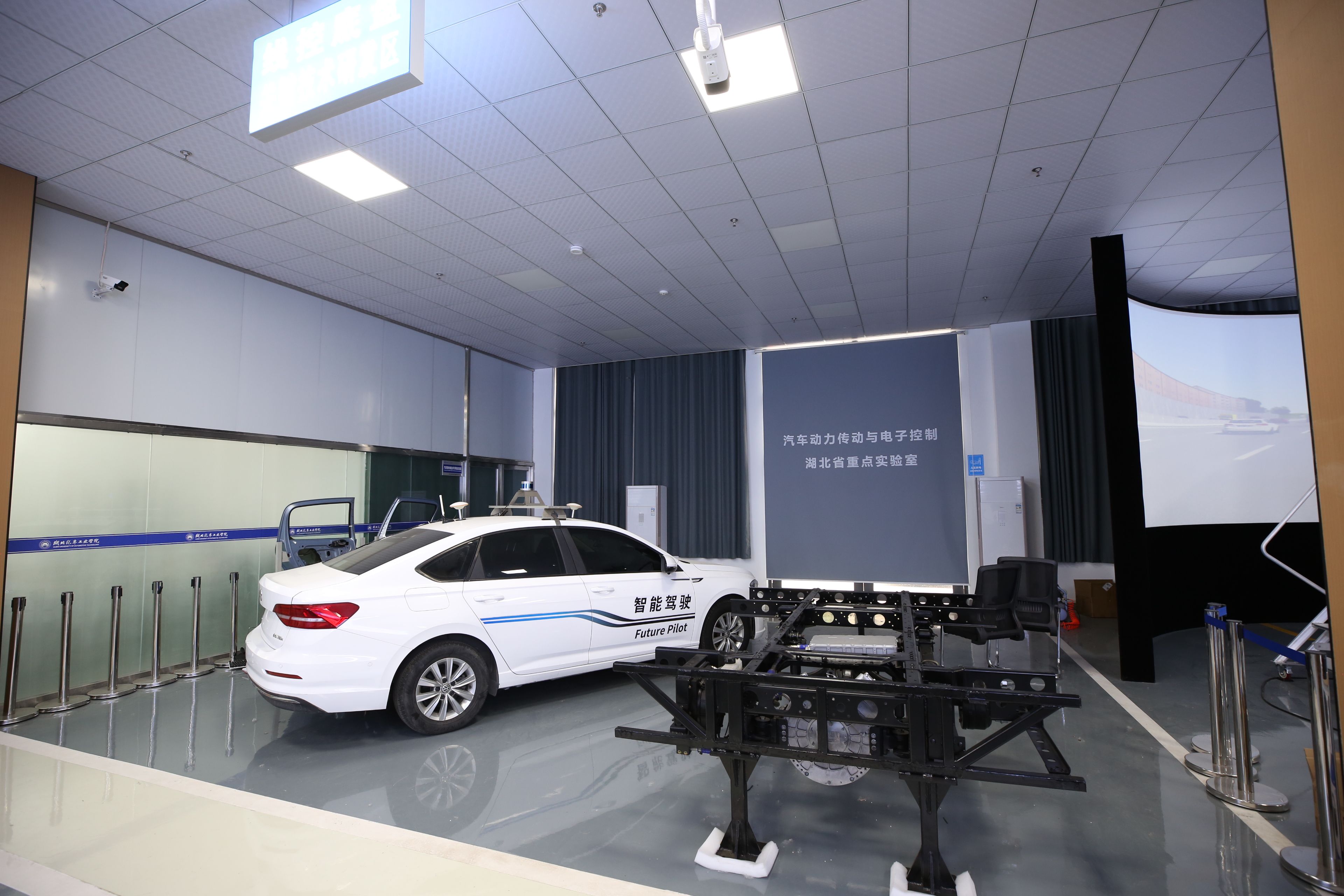 “汽车动力传动与电子控制湖北省重点实验室”2009年获批立项建设。根据汽车动力传动系统技术现状和发展趋势,结合我校研究领域的科研基础和学科积累,发挥我校在汽车动力传动和电子控制技术方面的优势,形成了新能源汽车关键技术、汽车行驶与传动控制技术、汽车智能驾驶、车身电子与网络总线技术、汽车现代设计与轻量化技术、汽车NVH振动与噪声测试等研究方向。实验室面积2200平方米,拥有德国MAHA底盘测功机、汽车综合性能检测线、发动机台架、新能源动力总成台架等大型仪器设备,设备总价值达9000余万元。