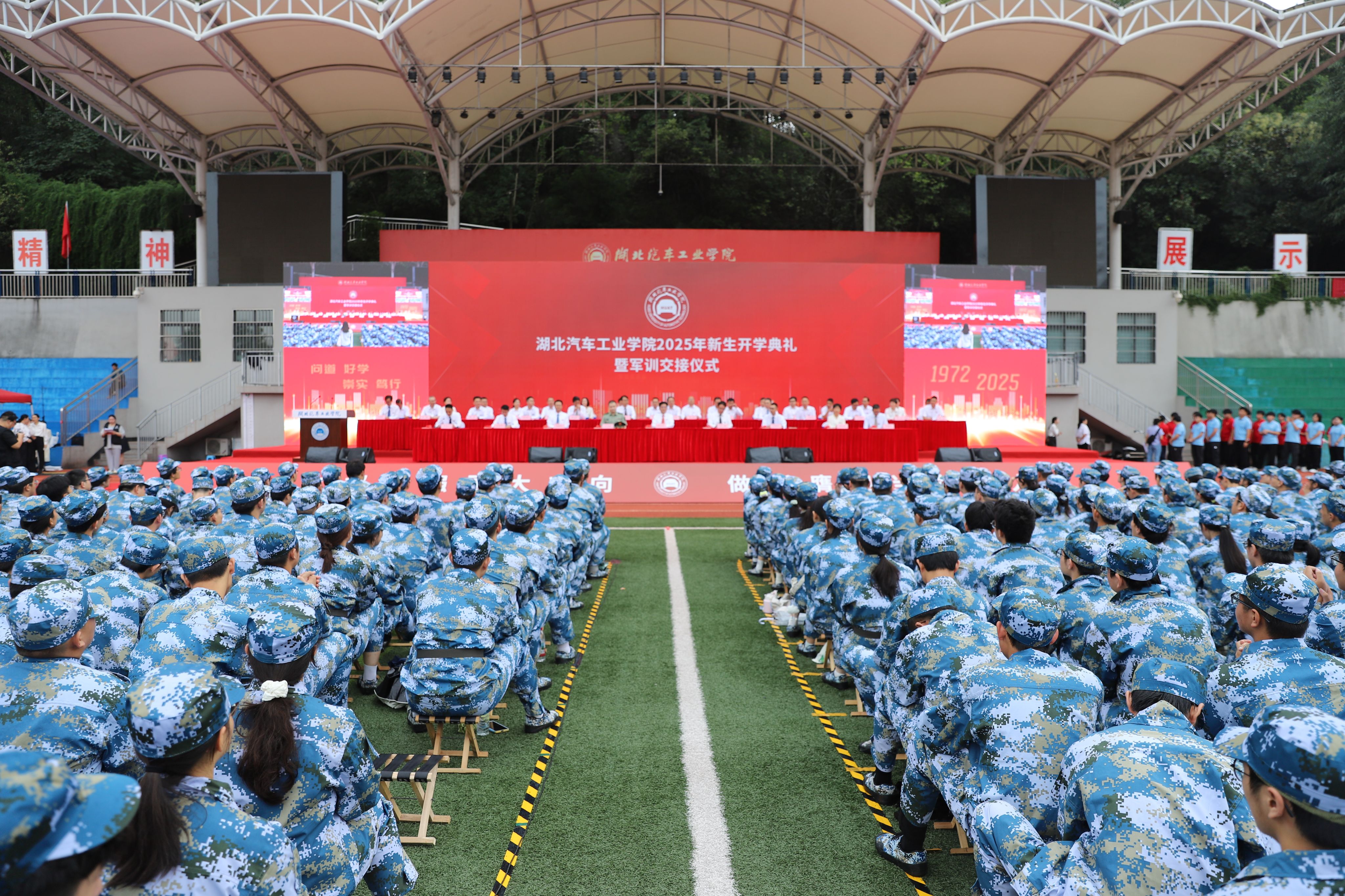 9月16日清晨,2025级新生开学典礼暨军训交接仪式在南校区田径场举行,7000余名新生共上“大学第一课”,王晓以“追求卓越 向车而行”为题,为全体新生讲授了精彩的一课。全体在家校领导出席开学典礼,校友代表罗超华,军训承训部队、十堰军分区中校副部长王玉磊应邀参加。开学典礼由党委常委、党政办主任王文山主持。