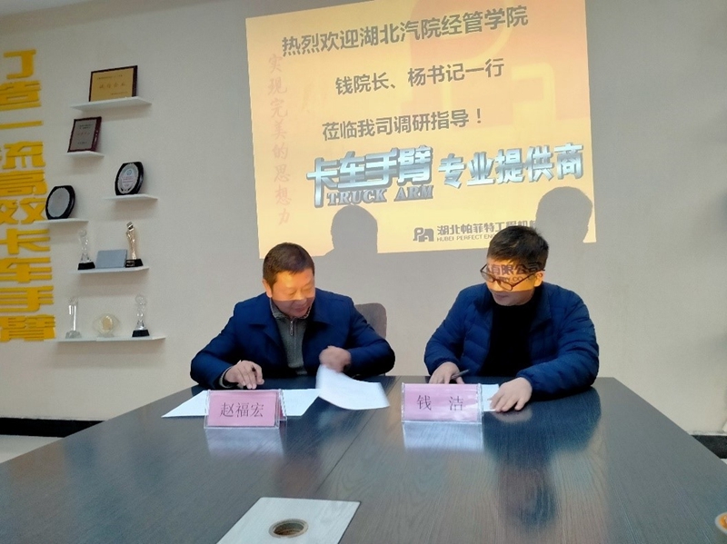 本网讯(文/董海燕)为大力推动非公企业与省属高校开展校企协作、校地共建,推进开展“携手共建、助力重振”活动,1月20日上午,经济管理学院与湖北帕菲特工程机械有限公司共建校企合作实习基地签约揭牌仪式在帕菲特工程机械有限公司隆重举行。