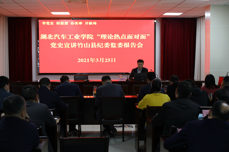 本网讯(文/谢超)3月25日,马克思主义学院严忠良、金威威、马保青、谢超四位老师深入竹山县开展“理论热点面对面”党史学习教育宣讲。此次宣讲设秦巴艺术中心、县纪委监委、城关镇3个会场。