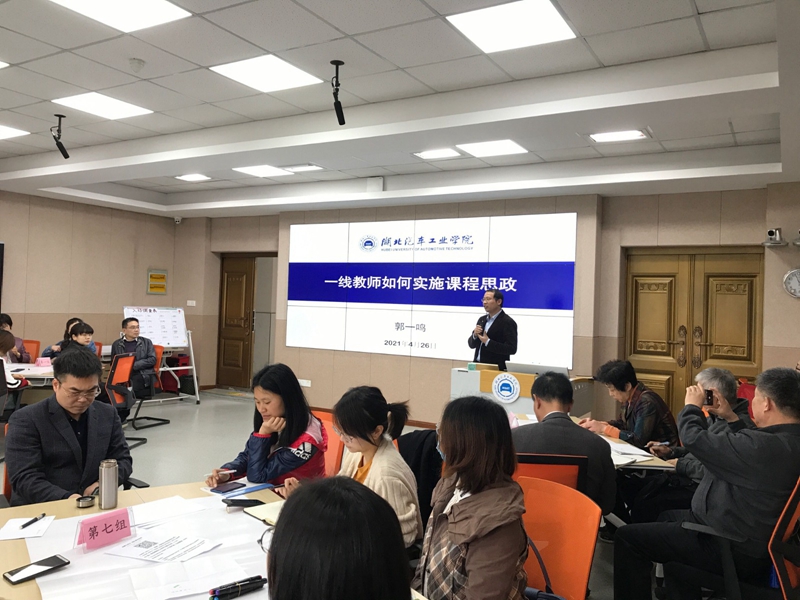 本网讯(文 图/何晓莉 齐艳红)为推动外院课程思政建设工作,提升专业教师的课程思政建设能力,提升教师课程思政建设的主动性、拓展课程思政建设方法和途径,4月26日下午,外国语学院、教务处、教师发展中心联合举办“明德”课程思政教学工作坊(第四期),邀请汽车工程学院郭一鸣副教授作“一线教师如何实施课程思政”主题分享。教务处副处长李健、教学督导阎菲、胡亚宁、罗宁、孔炎清、外国语学院及校内其他学院50余位教师参与了此次工作坊。外国语学院副院长王辰晖主持了本次活动。