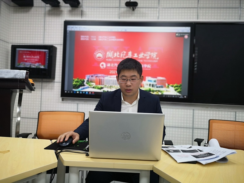 本网讯(文/周骁)5月10日晚,学校邀请理学院青年教师周骁在线开展了湖北汽车工业学院、湖北汽车工业学院科技学院2021年专升本政策宣讲直播活动。宣讲会由湖北汽车工业学院教务处副处长李建主持、教务处副处长刘荣、湖北汽车工业学院科技学院院长助理兼教学管理部部长孟光参与了现场答疑。