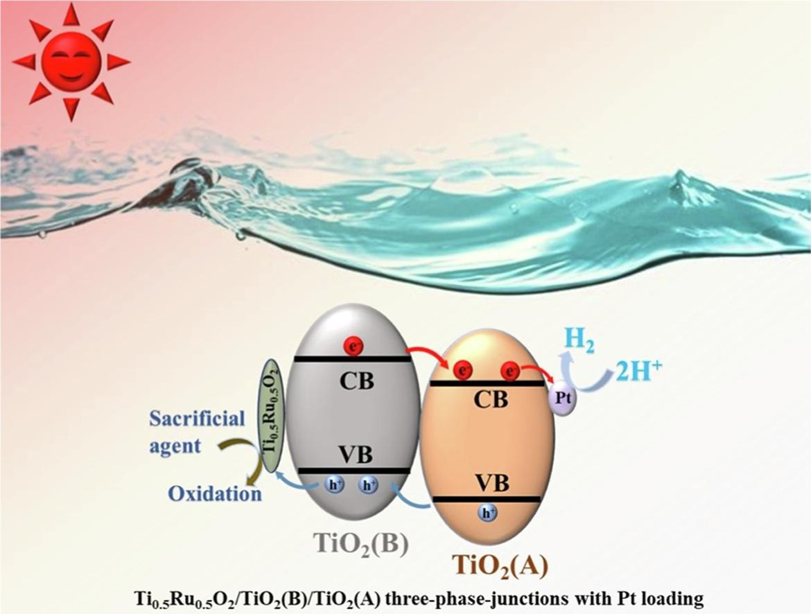 (文/罗啸 熊永臣)近期,Elsevier旗下著名期刊Applied Surface Science(Appl. Surf. Sci.)在线发表了我校数理与光电工程学院材料物理系罗啸博士的最新研究成果:“Remarkably enhanced photocatalytic H2evolution via construction of Ti0.5Ru0.5O2/TiO2(B)/TiO2(A) three-phase-junctions”。罗啸博士为第一作者,论文的主要工作由他在博士期间完成。湖北大学高云教授为论文的通讯作者。我校为第二通讯单位。