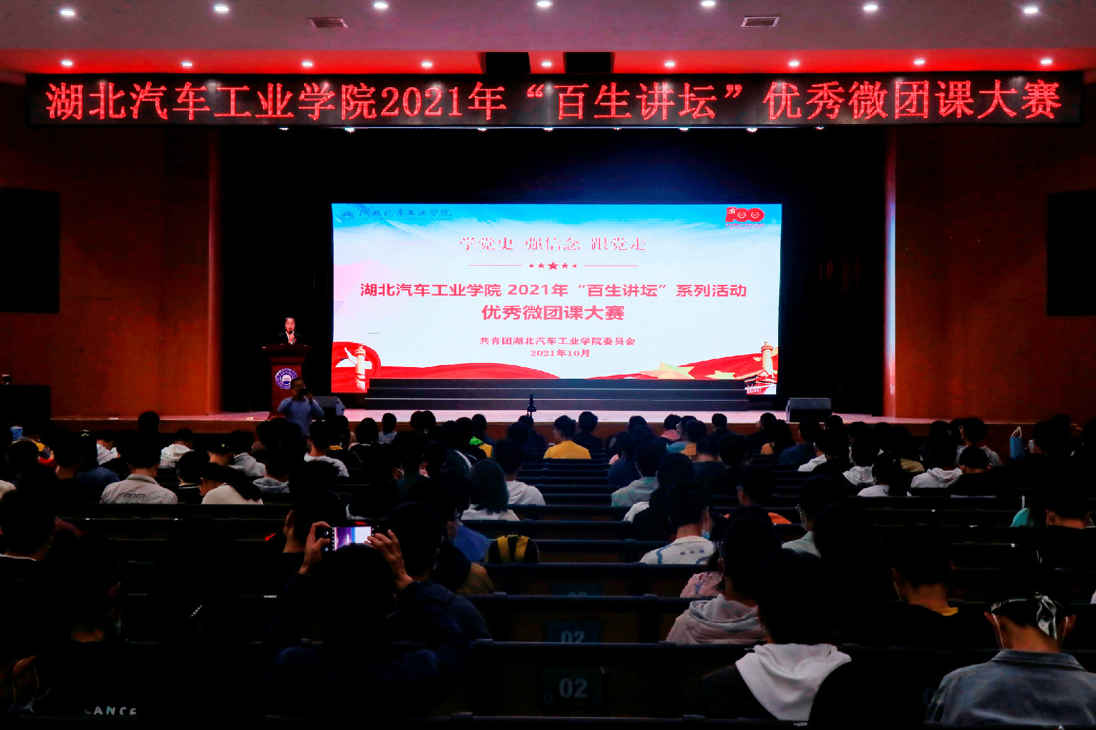 本网讯(文/图 何静)今年是中国共产党成立100周年,为持续深化“百生讲坛”——学习宣传贯彻习近平新时代中国特色社会主义思想活动,推进习近平新时代中国特色社会主义思想进支部、进社团、进网络、进团课,10月11日下午,我校在大礼堂举行2021年“百生讲坛”优秀微团课大赛。来自各学院推荐的10名“微团课”参赛老师和青马工程培训班学员共计400余人参加了本次活动。