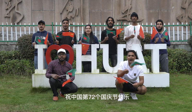 国际教育学院利用中国共产党成立100周年和中华人民共和国成立72周年契机,组织了“共度国庆佳节献祝福”“观看红色电影学历史”“参观十堰市博物馆悟思想”等主题鲜明的教育活动,鼓励外籍教师参加“激情七月 红歌飞扬—学党史 勇担当 讲清廉 庆百年”歌咏比赛。此类系列活动形式多样,深受师生喜爱,红色铸魂实效显著。
