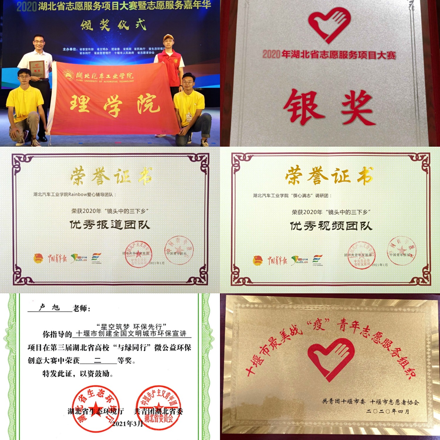 带领指导团组织广泛开展“挑战杯”、创新创业、数学建模、志愿服务活动,组织团员青年开展文化、科技、卫生“三下乡”活动;聚焦疫情防控服务、文明城市创建、社区便民服务、青年服务、专业服务等志愿服务,推动志愿服务活动制度化,常态化开展。大力开展生态环保和节约型社会建设活动,加大对青年的环保意识教育;开展“一江清水送北方,争做时代守井人”宣传教育活动,推动节约型社会建设。进五年来,获得“互联网+”国家级铜奖1项,“挑战杯”省级奖5项,三下乡社会实践国家级奖项7项,志愿者分会获湖北省志愿服务项目大赛银奖、北省高校“与绿同行”微公益环保创意大赛二等奖和三等奖、十堰市最美战“疫”青年志愿服务组织。