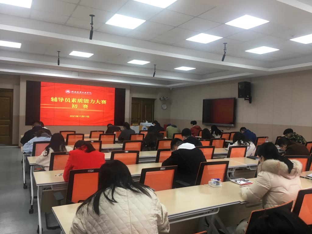 本网讯(文/图 王新)为深入学习宣传习近平新时代中国特色社会主义思想,推动《普通高等学校辅导员队伍建设规定》深入实施,进一步提升辅导员队伍的理论水平和专业素养。11月11日下午,我校2021年辅导员素质能力大赛初赛——基础知识测试环节在1305教室顺利举行。各二级学院学工办主任、分团委书记、学工部科员(部分)和一线专职辅导员(包括武襄基地辅导员)共35名选手参加了比赛,学工部安排专人监考,陶伟部长、倪凰副部长巡考。