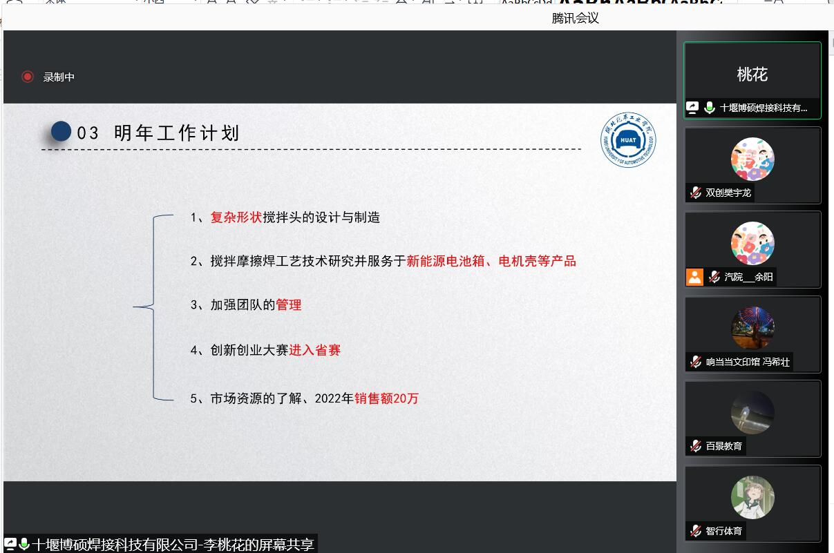 会后创业基地企业代表纷纷表示,2022年是我校大学生创业基地建设年,我们将努力奋斗,提升企业经济效益和社会影响,为湖北汽车工业学院校庆50周年做出自己的贡献。
