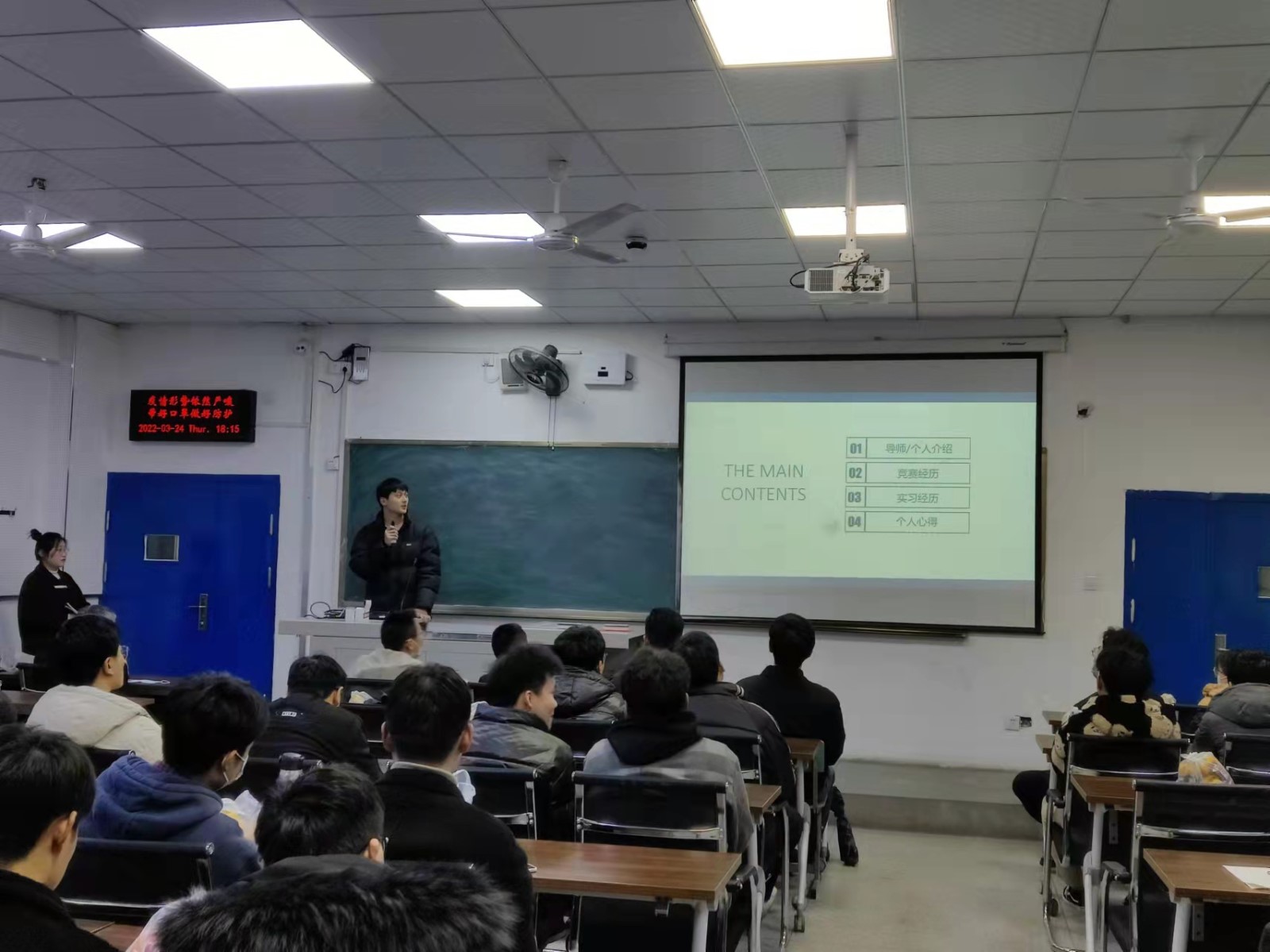 本网讯(文/丁光惠 胡文涛)为迎接建校50周年华诞,营造浓厚的“学术校庆”氛围。 3月24日晚,湖北汽车工业学院研究生“智创论坛”电气与信息工业学院学术晚茶活动在第六教学楼6510顺利举行。电气与信息工程学院副院长黄海波、研究生导师简炜教授、徐龙艳副教授、研究生班主任吴文欢博士、张金亮博士及学院全体研究生共90余人参加了本次活动。