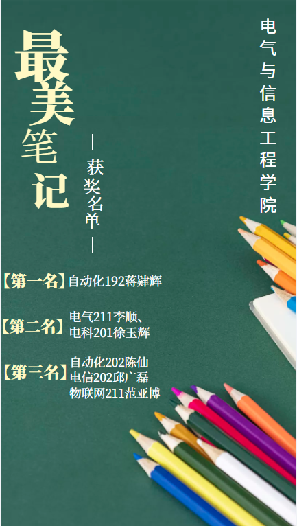 本网讯(文/邹雨函、姜洛颖)为更好的迎接学校五十周年校庆,进一步加强优良学风建设,营造积极浓厚的学习氛围,促进学生养成良好的课堂笔记习惯,电气与信息工程学院于3月22日至31日期间开展了寻找“最美笔记”评选活动。