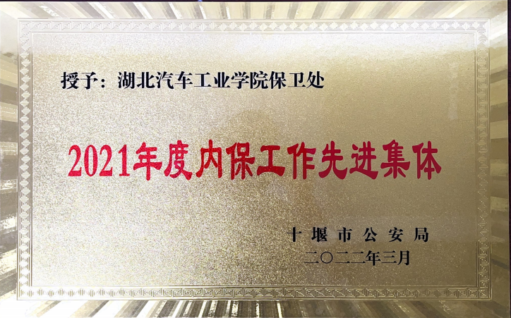 本网讯(文/李海庆)近日,十堰市公安局对2021年度全市重点企事业单位内部治安保卫工作成绩突出的集体和个人进行表彰,我校保卫处荣获全市“2021年度内保工作先进集体”称号、李海庆荣获“内部单位治安保卫工作”先进个人。