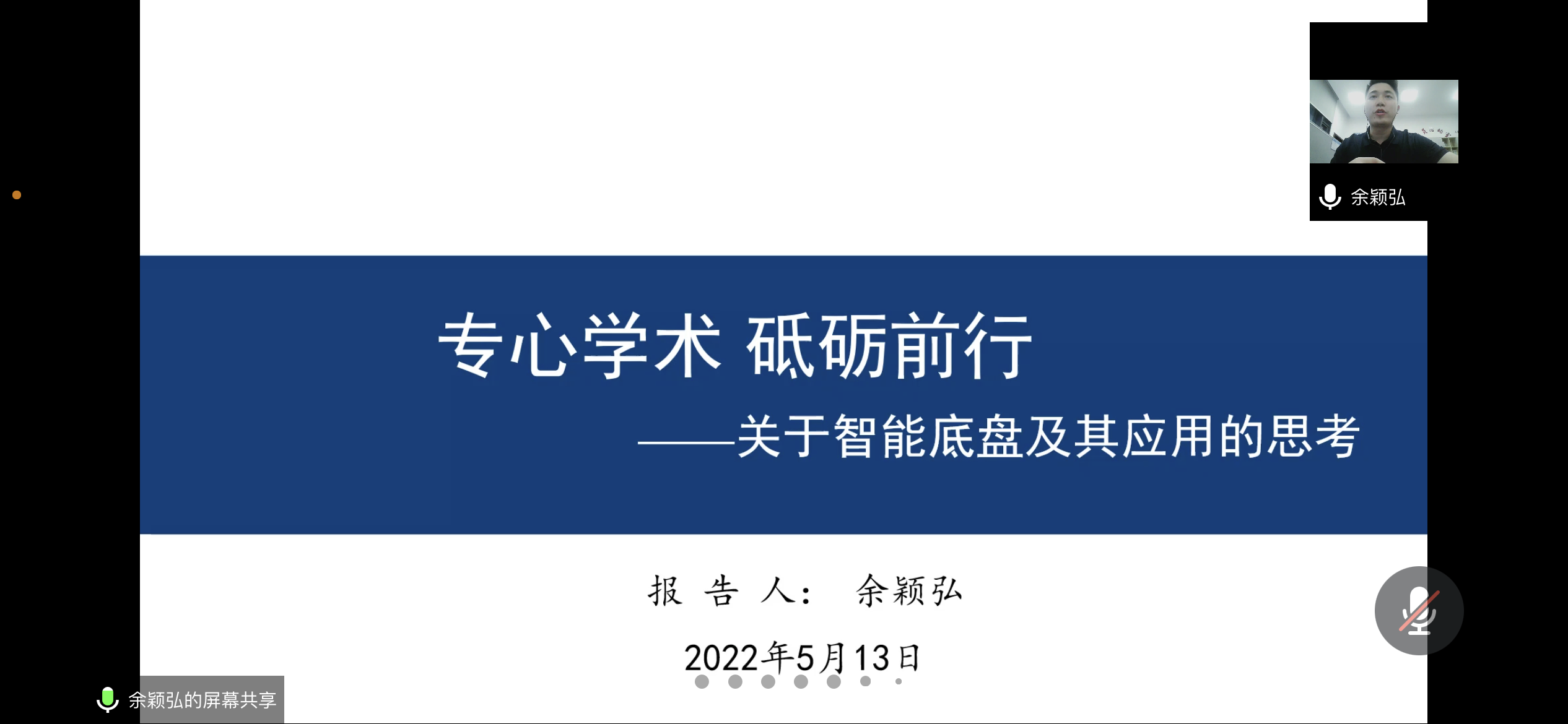 本次讲坛由我校优秀毕业生余颖弘博士作为主讲人,为大家作主题为“专心学术,砥砺前行——关于智能底盘技术及其应用的个人理解分享”的报告。讲座由何君主持。
