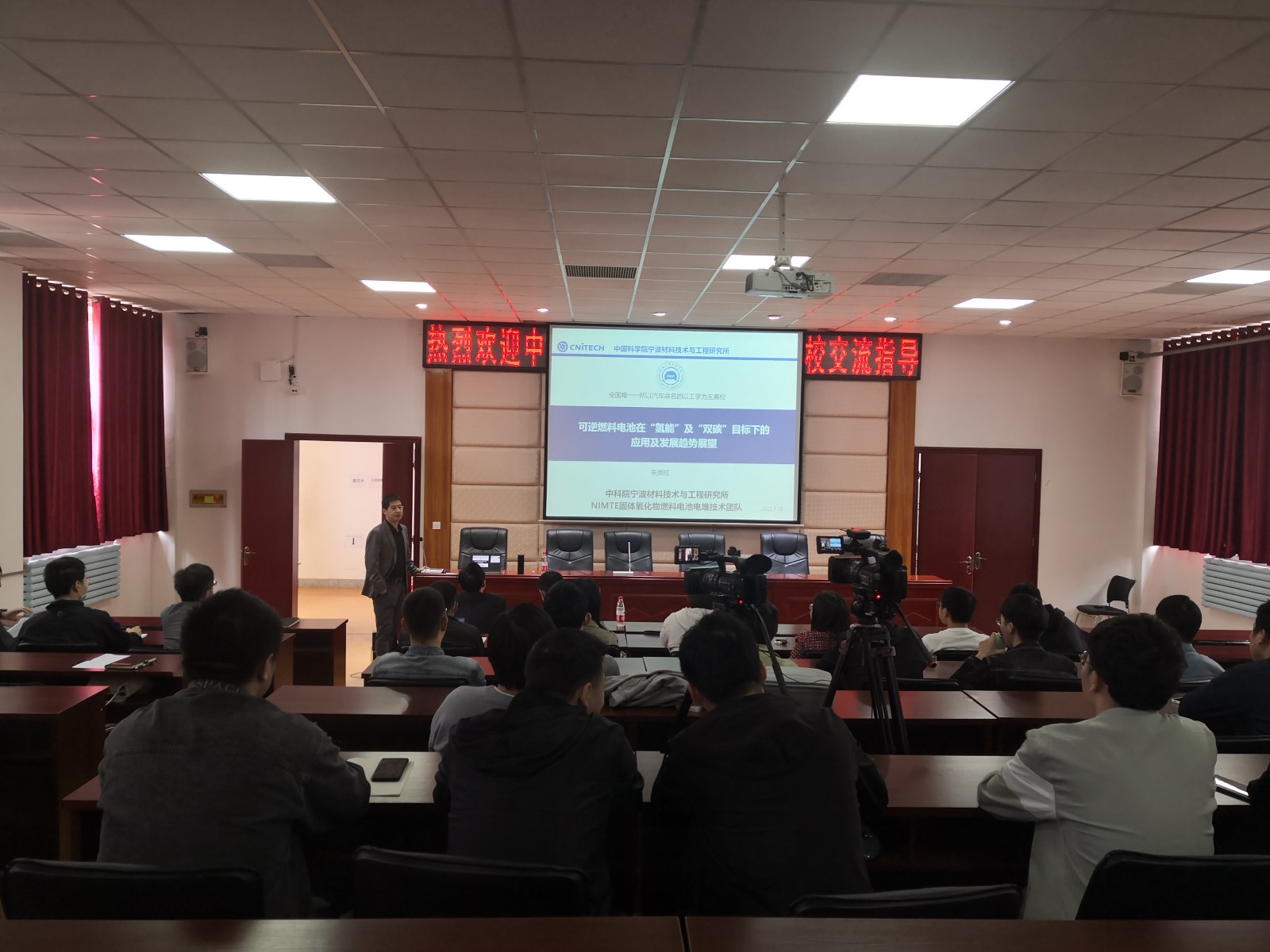 报告会上,朱良柱向与会师生分享了“双碳背景下的新能源电池技术”,主要从两个方面:可逆燃料电池在“氢能”及“双碳”目标下的应用及发展趋势展望,可逆固体氧化物电池(ReSOC)高效发电及电解水制氢的基本原理、性能预测及电池设计等方面进行了讲述。讲解的同时,朱良柱也向与会的大家分享了自己的科研经历以及目前所在的中科院宁波材料所燃料电池团队的具体情况。朱教授的报告内容深刻、逻辑清晰、讲解细腻,现场掌声不断,与会师生反响强烈。报告结束后,与会老师们就有关的学术问题与朱教授进行了热烈探讨,同学们也就自己的困惑和感兴趣的地方向朱教授发出了提问并得到其详细解答,学生们深感收获巨大,讲座结束后仍意犹未尽。