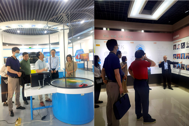 招聘活动结束后,肖艳一行在张默和曾又的陪同下参观了学校校史馆和物理实验室。