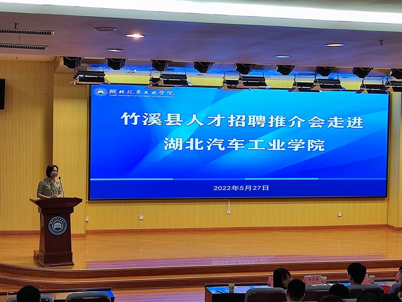 肖艳对学校对本次活动的大力支持表示感谢,并向与会人员介绍了此行的目的和具体议程。肖艳表示,近年来竹溪聚焦“一个目标”、“两大战役”、“三区布局”、“四县方略”、“五大攻坚”、“六大品牌”、“七大突破”的目标任务,拉开了竹溪经济社会发展的新篇章。竹溪县当前求贤若渴,欢迎汽院学子来竹溪就业创业。