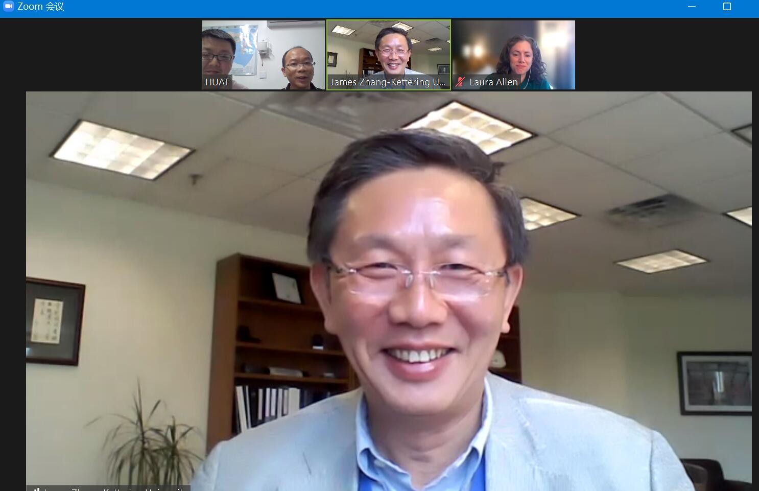 本网讯(文/方鹏)北京时间5月31日晚9时(美国东部标准时间5月31日上午9时),我校与美国凯特林大学召开线上会议。美国凯特林大学副校长James Z. Zhang、国际项目主管Laura M. Allen、我校国际合作交流处副处长苏子波、留学生工作办公室主任方鹏参加了本次线上会议。
