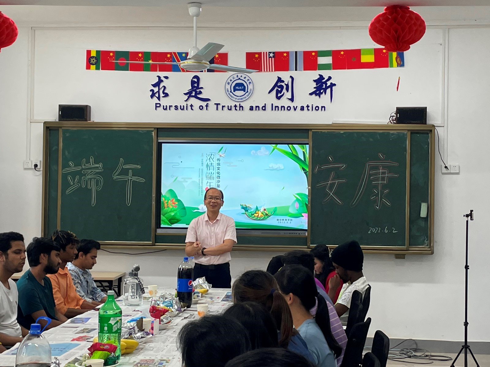本网讯(文/图 张婷婷)“五月五,是端阳。门插艾草,香满堂。吃粽子,喝雄黄,划起龙船庆吉祥”。又是一年端午节,国际教育学院在6月2日举办了端午传统文化微沙龙活动,参加此次活动的有来自电气与信息工程学院、汽车工程学院、外国语学院、数理与光电工程学院、科技学院、国际教育学院的中外籍师生40余人。