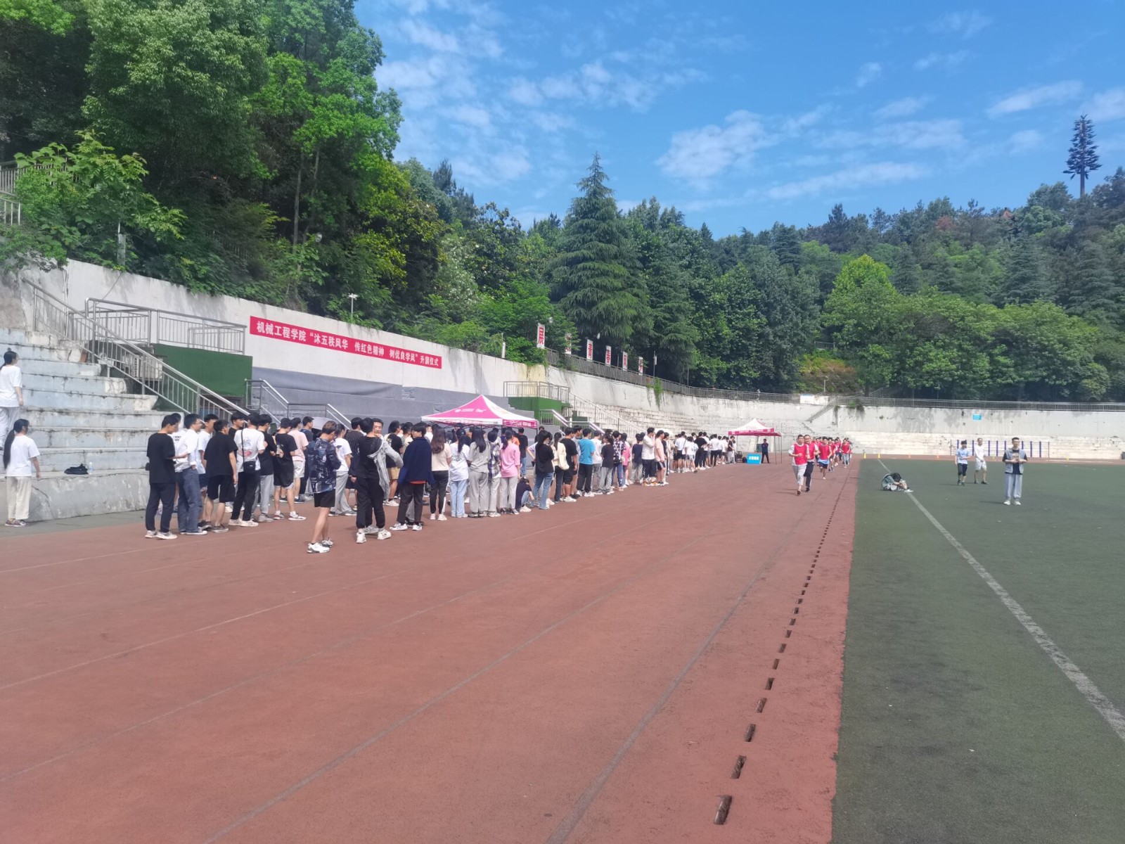 鉴于校外基地运动场地、体测仪器无法达到体质健康测试需求等相关问题,体育部提前研判,针对下半年赴校外基地学习及外出实习学生设计测试方案。四月底发布测试通知,告知测试对象提前进行有针对性的锻炼。5月28日-29日体育部全体教职工利用周末时间段完成近两千人次测试工作。