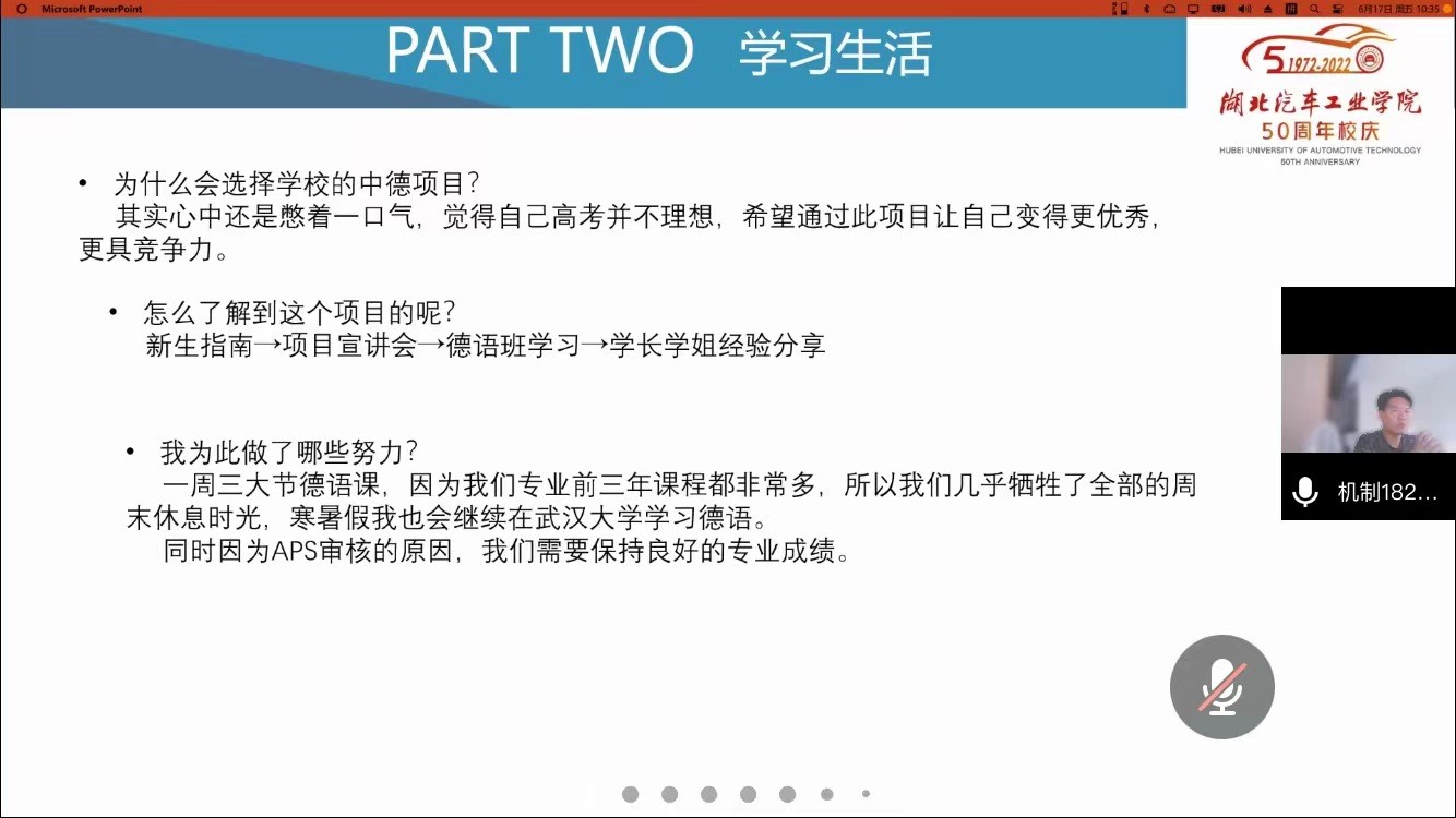 6月17日下午一场特别的国际交流微沙龙在线上展开,本次微沙龙活动以对话访谈的形式展开,国际合作交流处赵雨晴老师作为主持人对话远在德国的18级校友曾鼎龙,探访他留学德国的故事。四十余名师生齐聚线上,了解丰富多彩的留学生活。