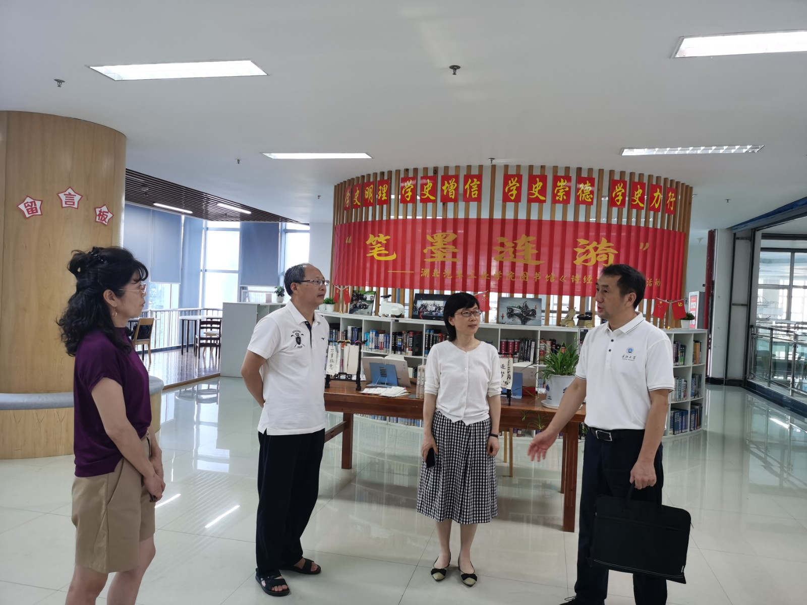 本网讯(文/图 翟永旭)6月27日下午,长江大学图书馆馆长王红松一行两人来我校图书馆调研交流。图书馆馆长毕丽芳、书记马均秦和副馆长王念春陪同参观并参加座谈。