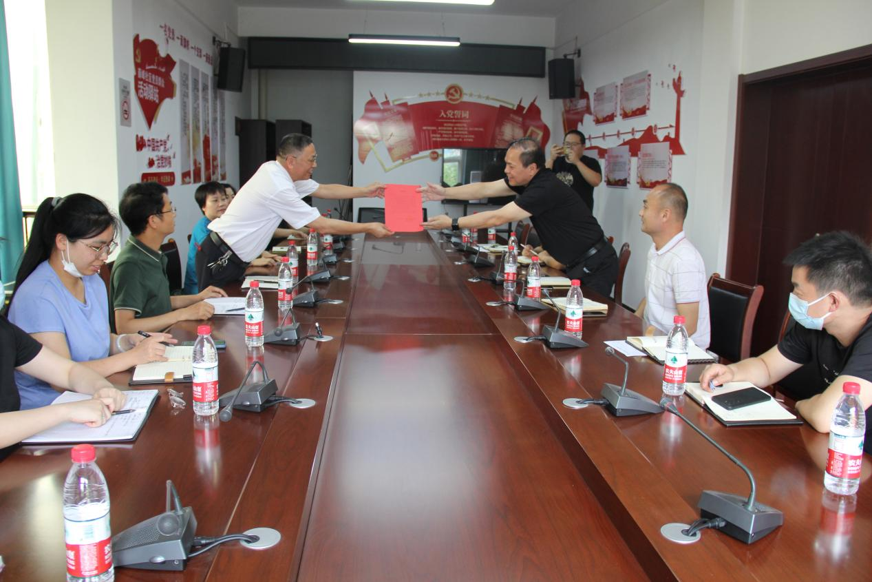 本网讯(文/图 干枘鑫)7月6日上午,武汉基地分党委书记郭都玺率全体工作人员下沉武汉经开区薛峰社区对接“下基层察民情解民忧暖民心”实践活动相关工作。社区王四新书记热情接待了郭都玺一行。