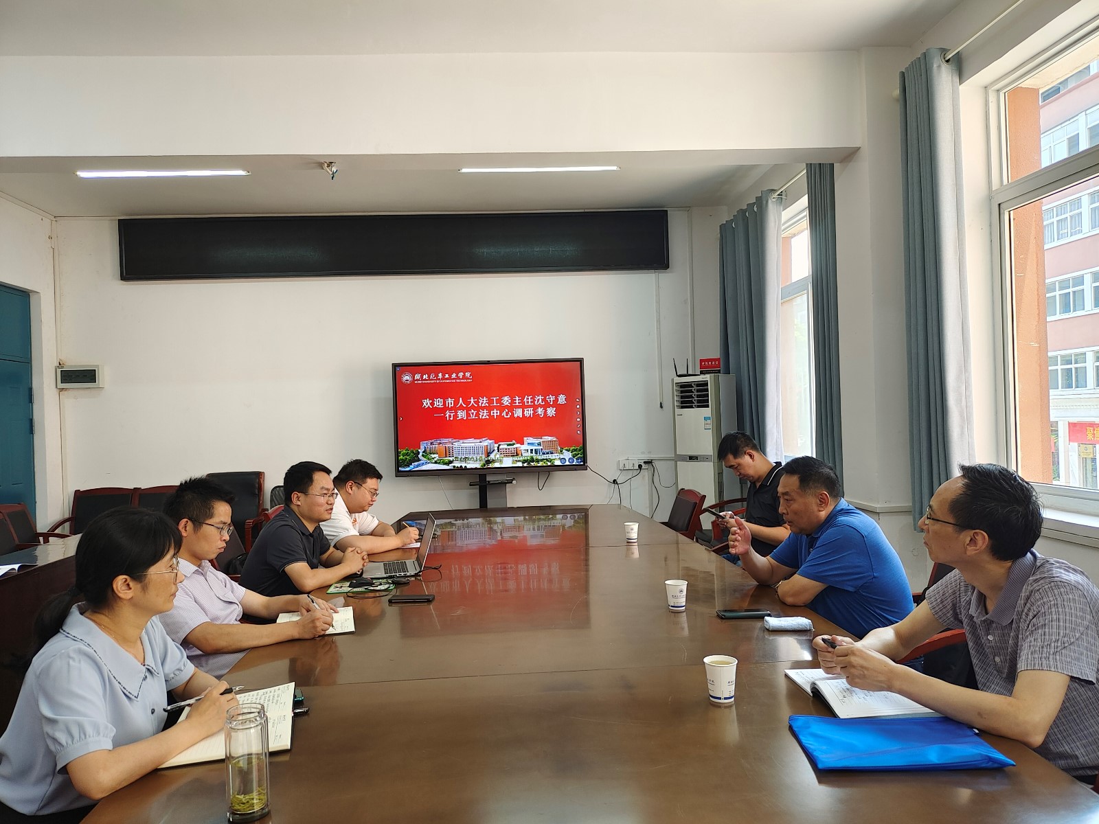 本网讯(文/陈来宏)7月8日下午,十堰市人大法工委主任沈守意等领导一行到十堰市地方立法研究中心调研考察,调研座谈会在我校人文学院二楼会议室召开,人文学院副院长(主持工作)黄永昌、成继平、法学系主任郑实、专业负责人景勤、陈来宏副教授等参加座谈会,会议由黄永昌主持。