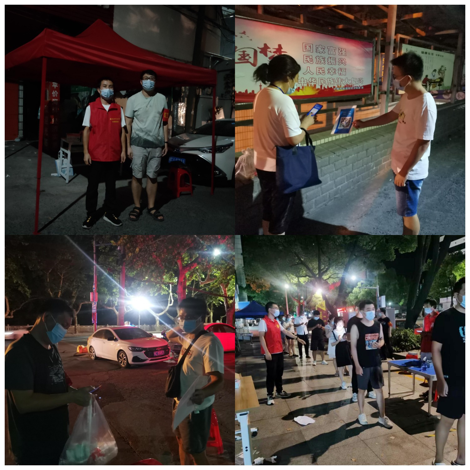 党员先锋做表率 在此次抗疫过程中,涌现出了一批以党员为先锋的志愿者服务队伍,他们顶着酷暑坚守在各个核酸检测点和防疫卡点,开展卡口值守、体温检测、核酸采样、排查登记等疫情防控工作。教工一支部书记张俊克服了一家老小无人照顾等重重困难,率先报名投入到疫情防控工作中。和张俊一样的还有教工二支部书记吴俊,他们第一时间组建了学院志愿服务工作群,带领教职工认真、高效完成学校部署的各项工作任务。为做好防疫工作后勤保障,他们还将自家蚊香、电扇、酒精等物品带到值守点供大家使用。学生支部书记李童一天24小时更是被安排的满当当,白天实时在线处理学院学工各类工作,同时还要指导孩子备战省运会青少年体育舞蹈比赛,中午和晚上十点钟之后又主动申请到所在社区承担志愿服务工作,并向所在社区提出合理化建议,有效减少了核酸检测人员扎堆和排队时间较长等问题。办公室主任鄢国祥在集中隔离期间无任何办公条件的情况下,依旧积极统筹学院疫情防控各项工作正常开展,做好学校各项数据统计工作。虽不能亲自到社区参加志愿服务,但一直在沟通、协调、动员教职工参加志愿服务工作,主动联系、关心被封控教职工的健康状况,实时掌握堰外教职工的动态。