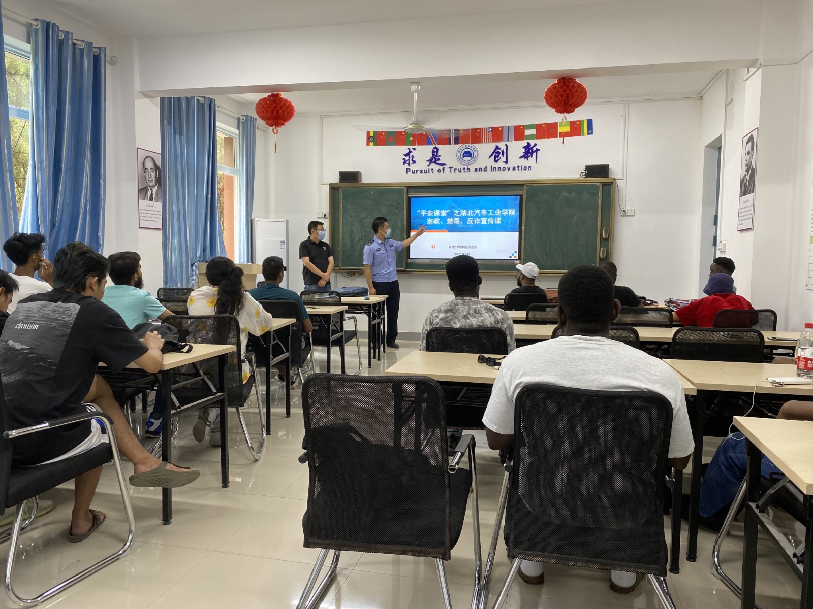 警官们走进校园、走进班级、走到来华留学生当中,从解读《中华人民共和国境内外国人宗教活动管理规定实施细则》、我国的禁毒法律法规到“什么是电信网络诈骗”“电诈的特点与现状”等几个方面进行了讲解,提醒学生们注意遵守我国宗教和禁毒法律法规,提高防范电诈的意识,筑牢平安生活、安全上网的牢固防线。